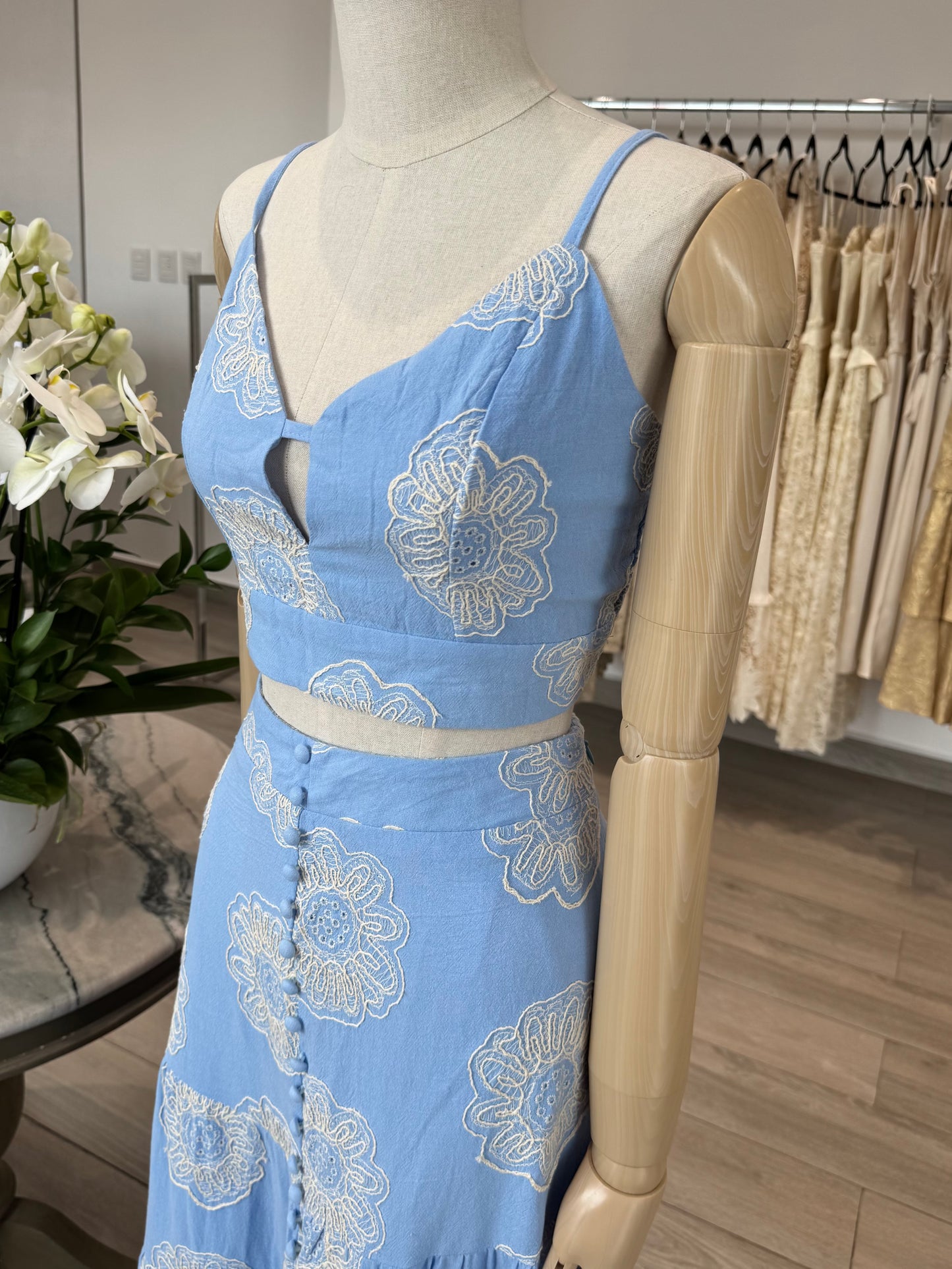 SET 2 PIEZAS TOP Y FALDA LARGA FLORES AZUL