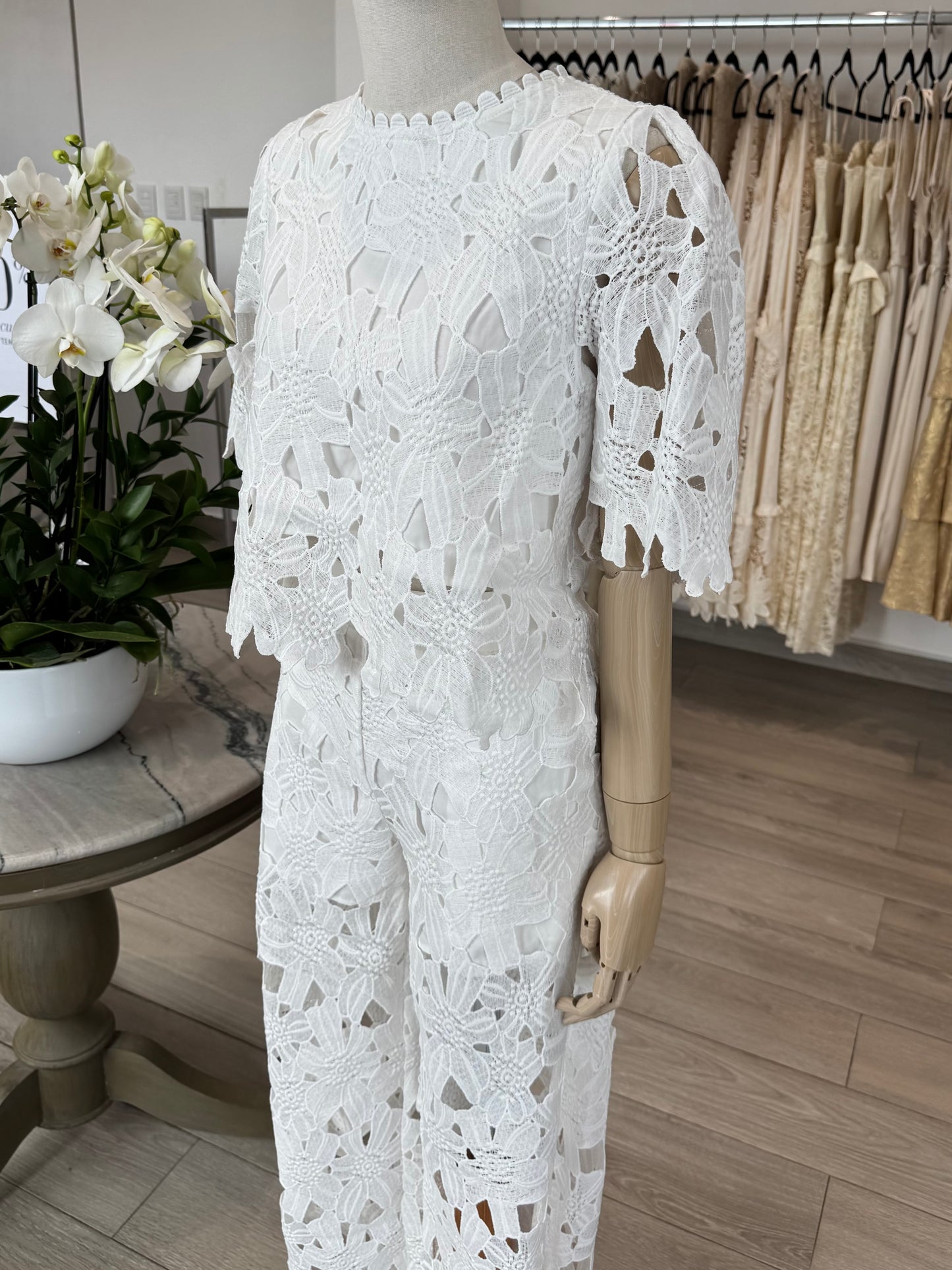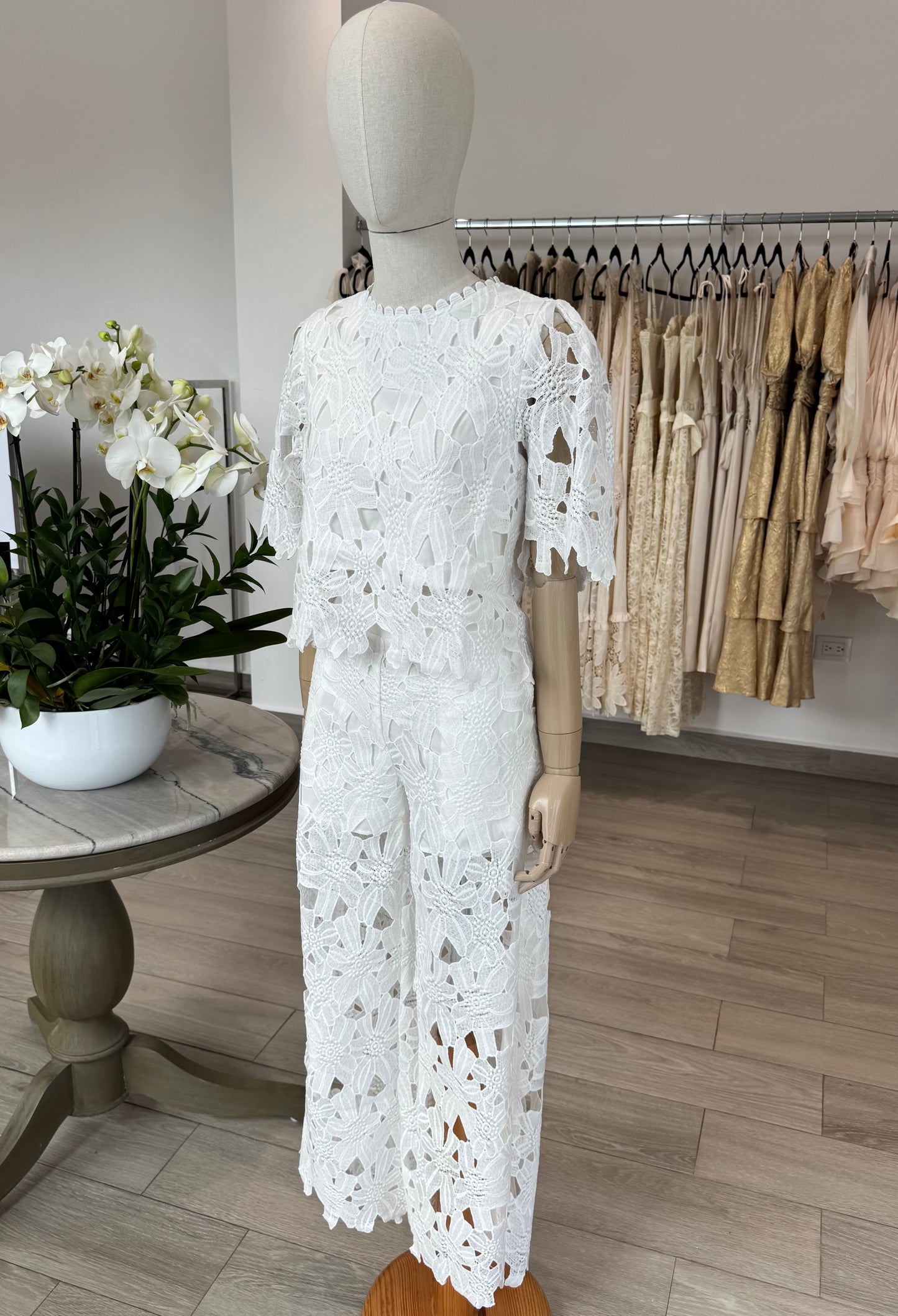 SET 2 PIEZAS BLUSA Y PANTALÓN ENCAJE BLANCO