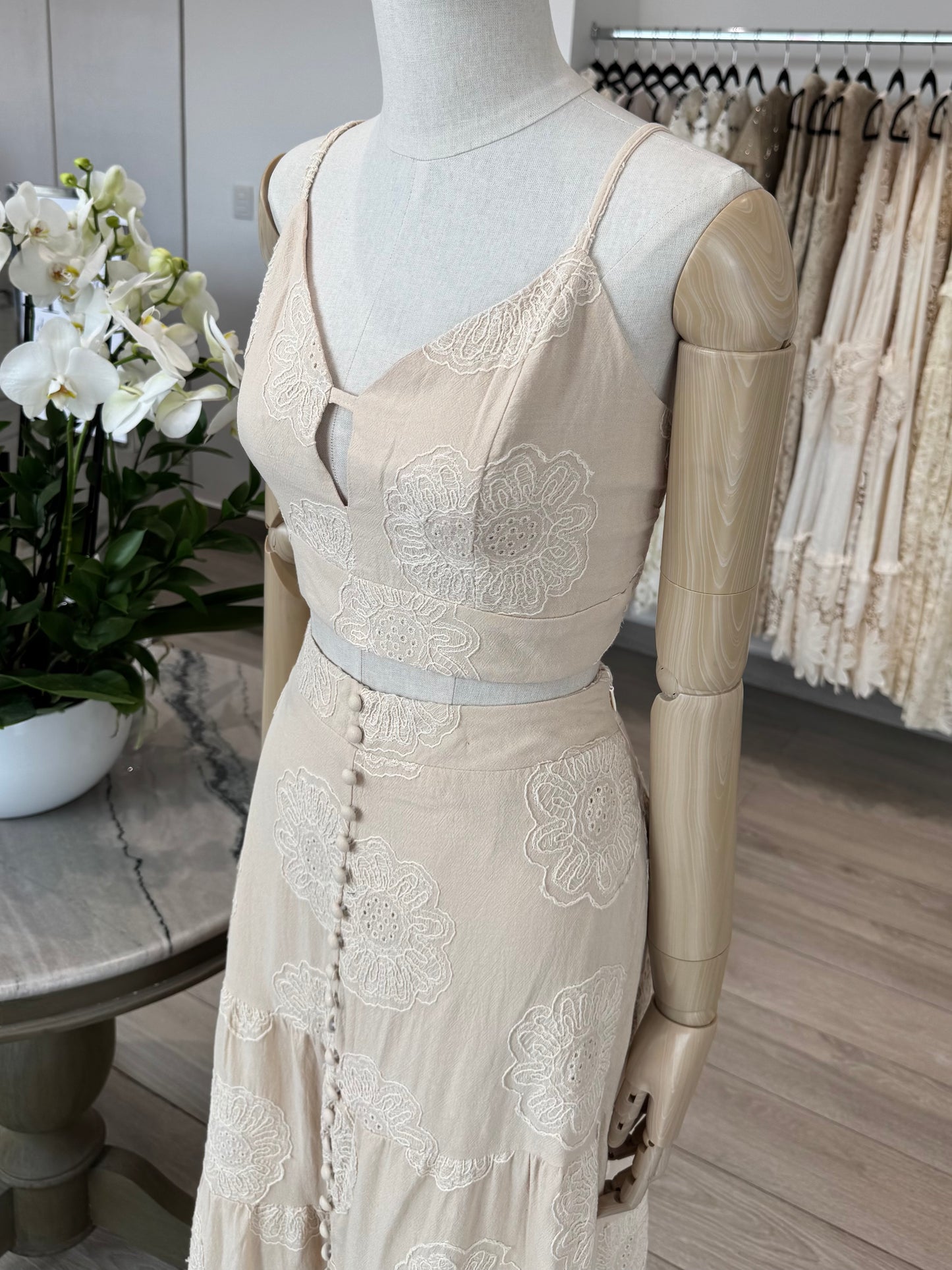 SET 2 PIEZAS TOP Y FALDA LARGA FLORES BEIGE