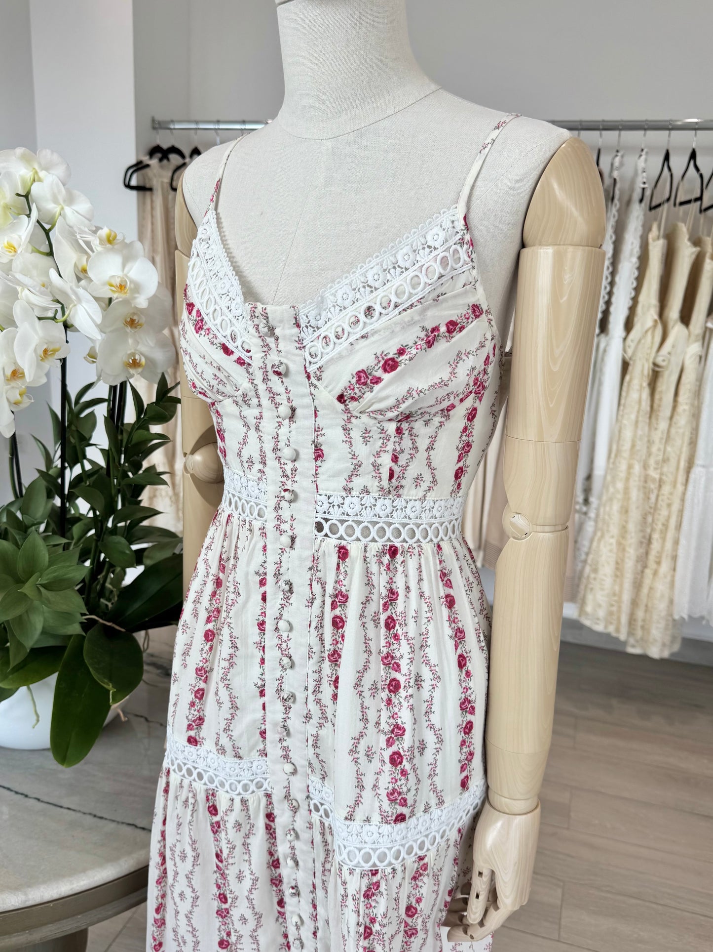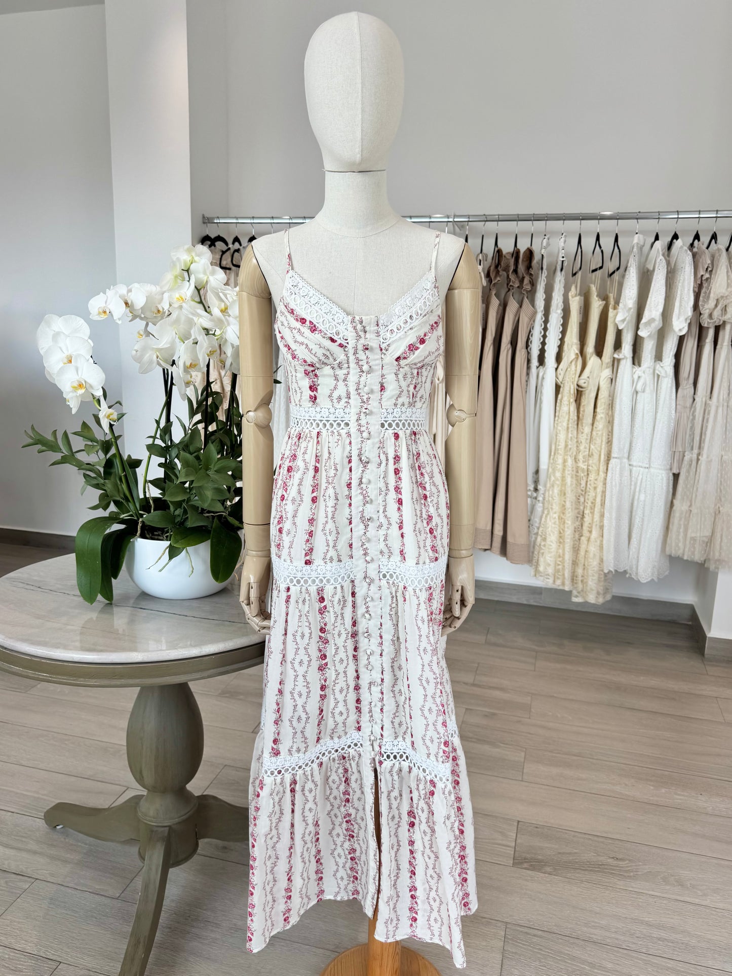 VESTIDO MIDI TIRANTES BLANCO FLORES ROSA