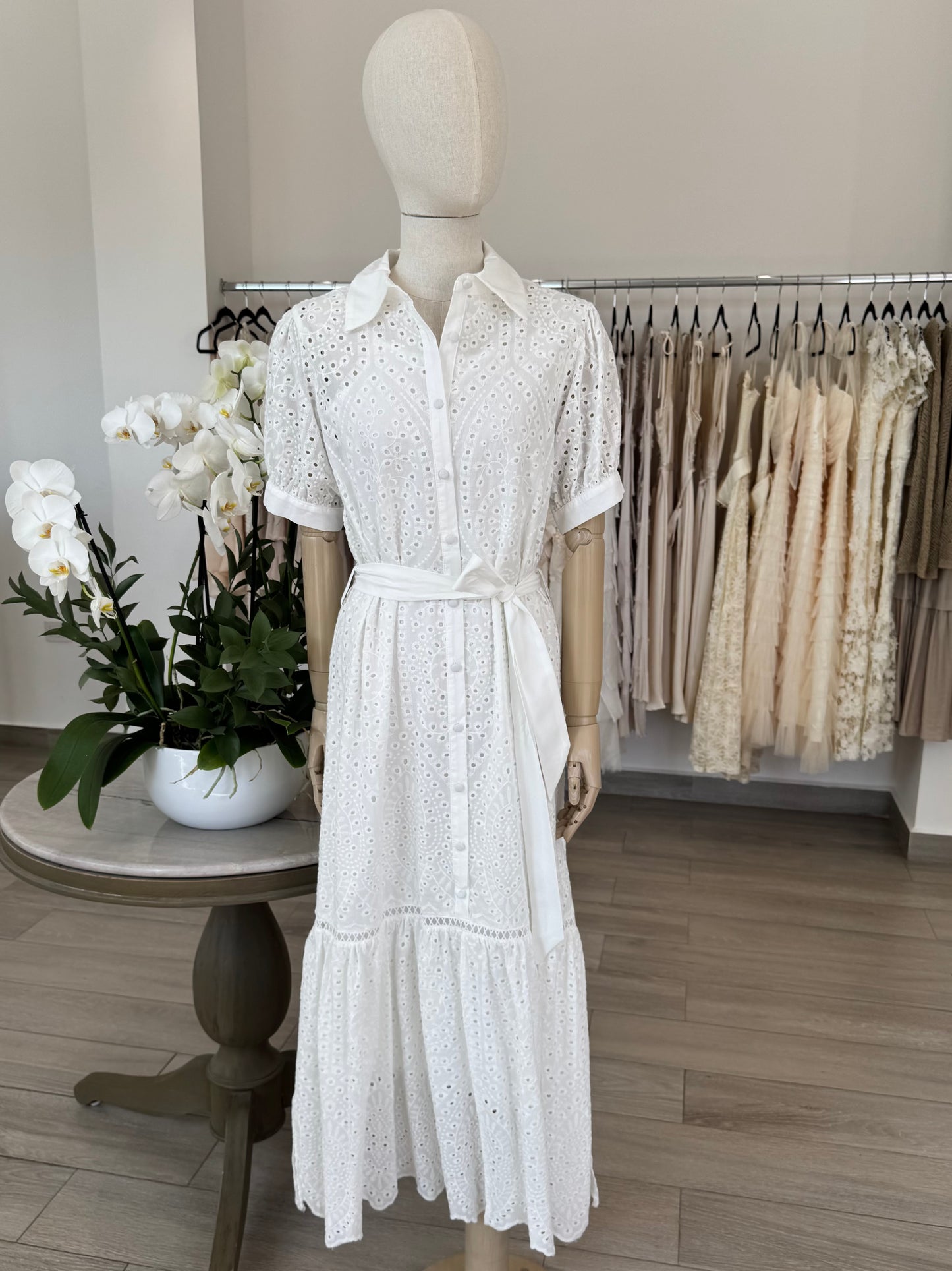 VESTIDO MIDI CAMISERO ALGODÓN BORDADO BLANCO