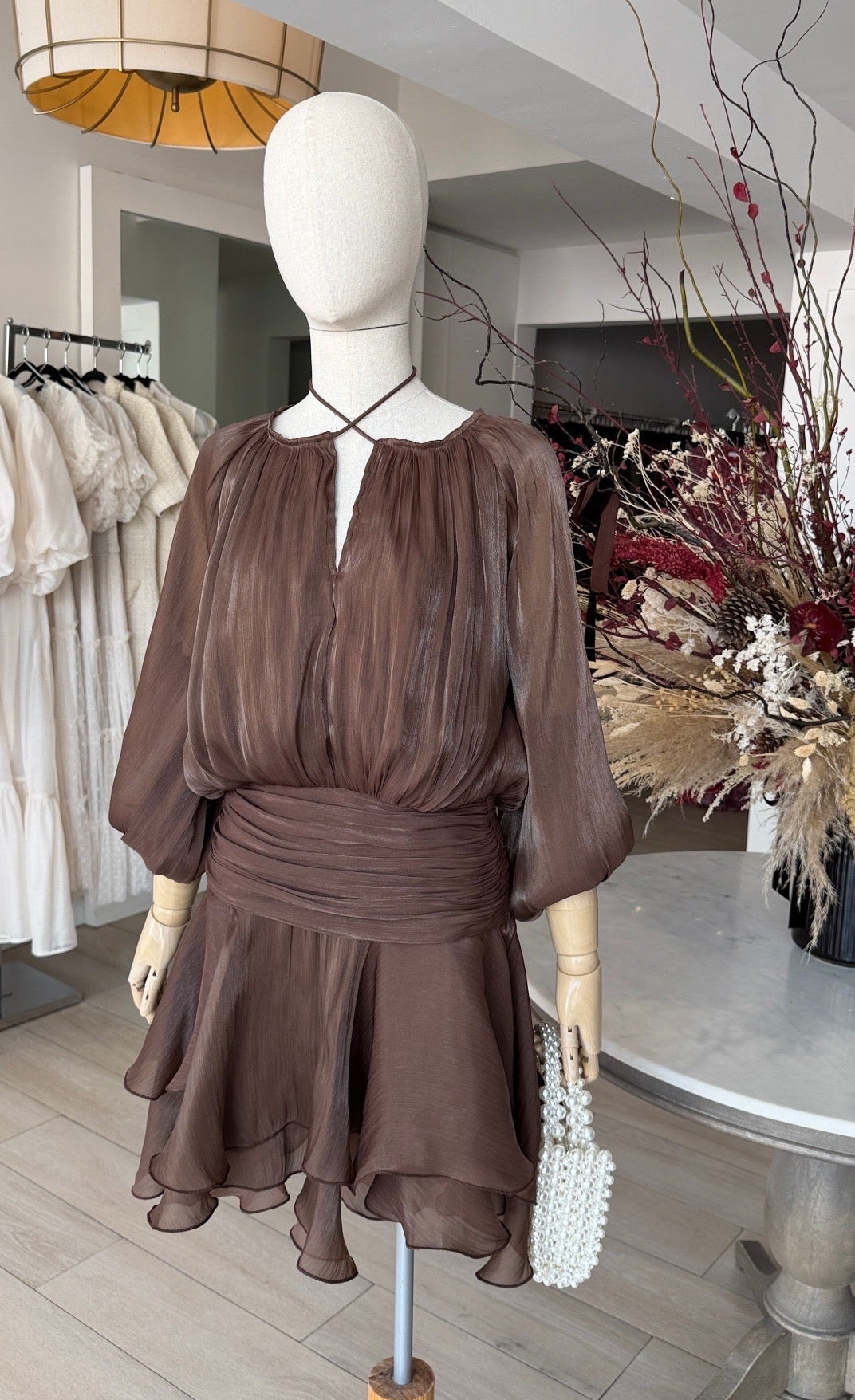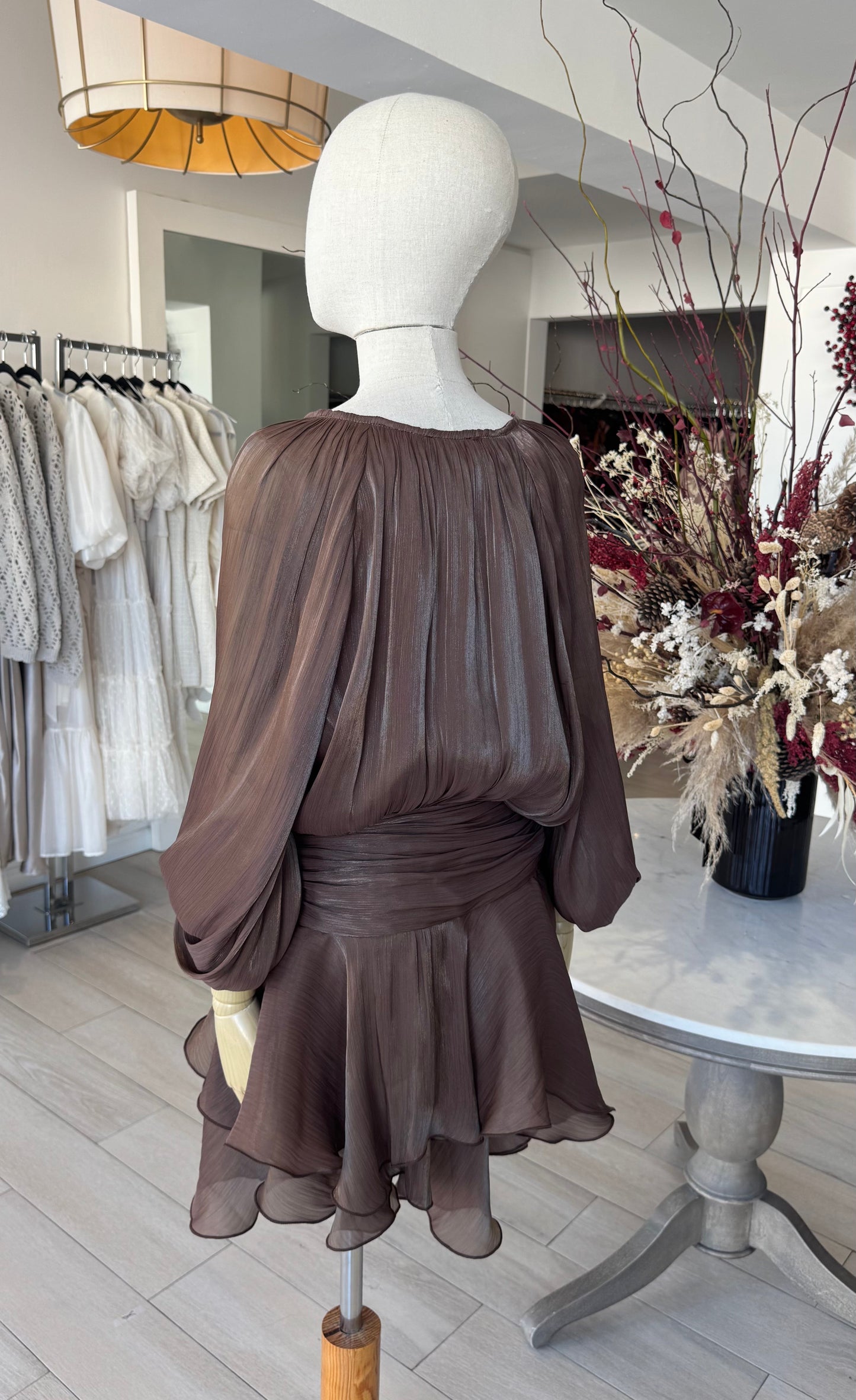 VESTIDO CORTO CINTURA BAJA CAFÉ