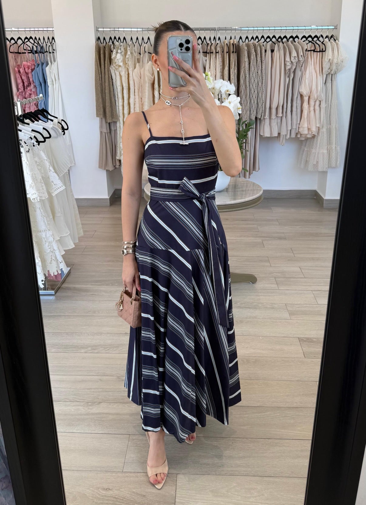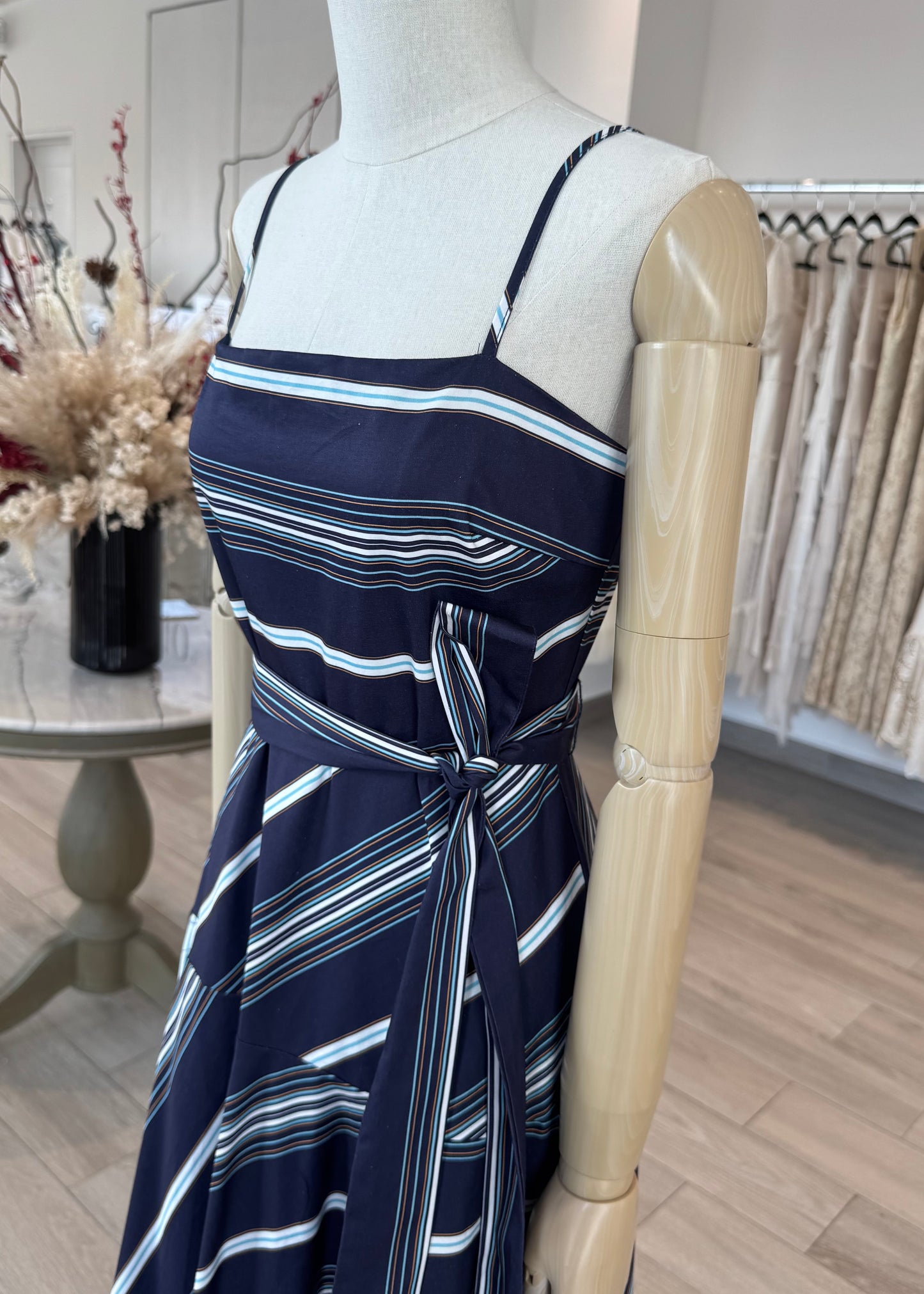 VESTIDO MIDI CINTURA BAJA RAYAS AZUL MARINO