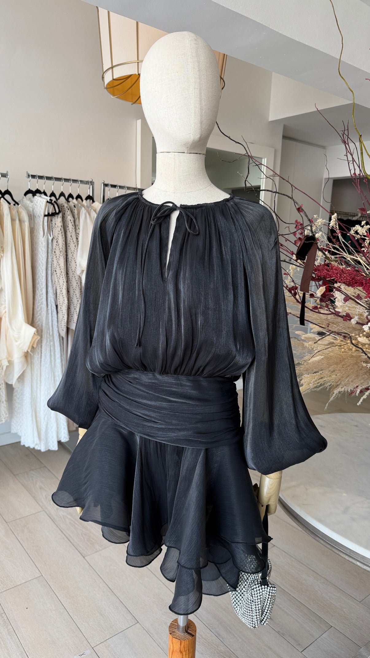 VESTIDO CORTO LAZO ORGANZA NEGRO
