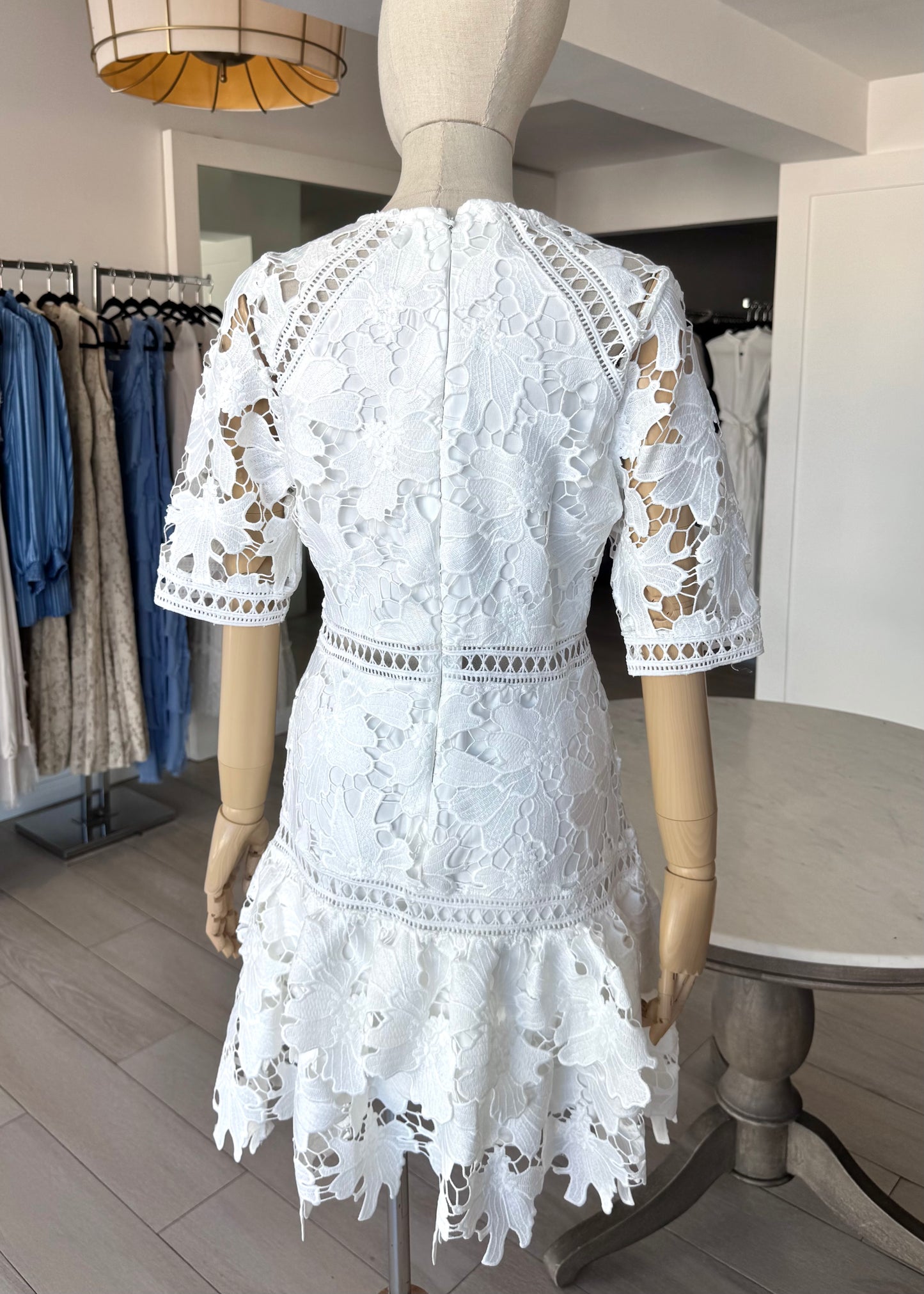 Este modelo ofrece un estilo delicado y versátil, con torso ajustado, falda ligera y encaje texturizado, creando un look juvenil y femenino.