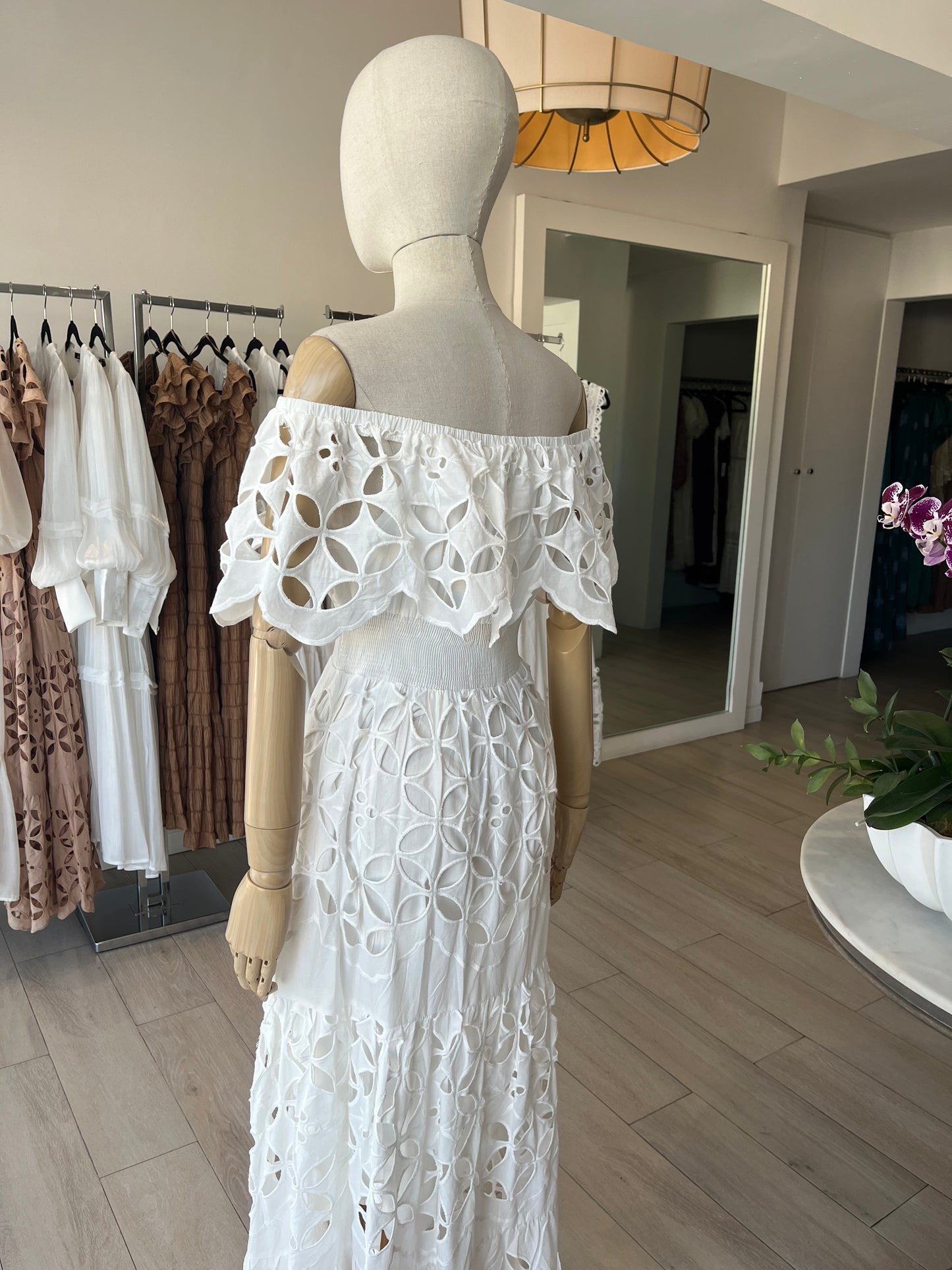 Nos encanta este vestido, es súper femenino y elegante. El elástico en la cintura lo hace muy cómodo.