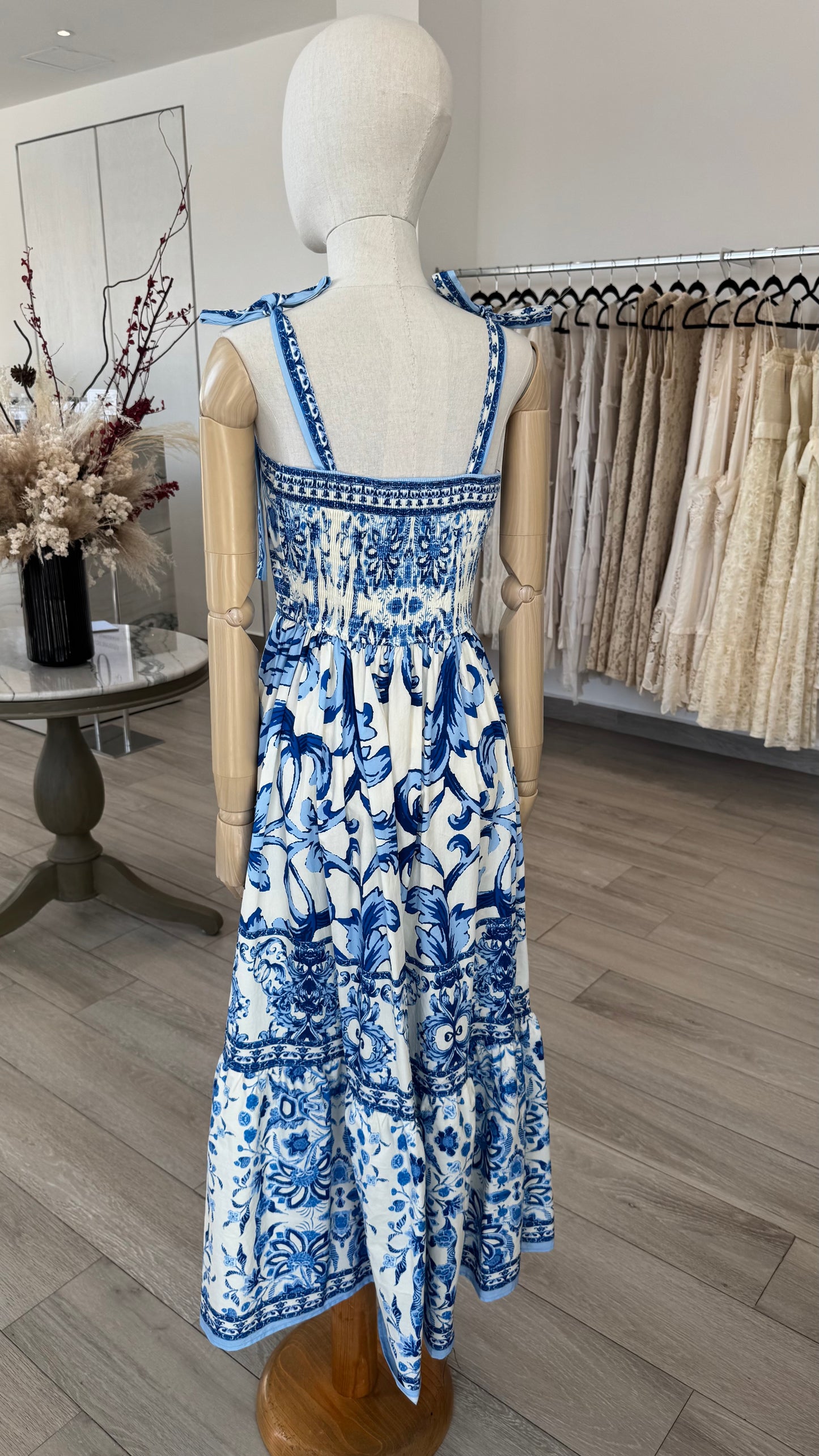 VESTIDO MIDI CV TIRANTES ESTAMPADO FLORES / AZULEJOS
