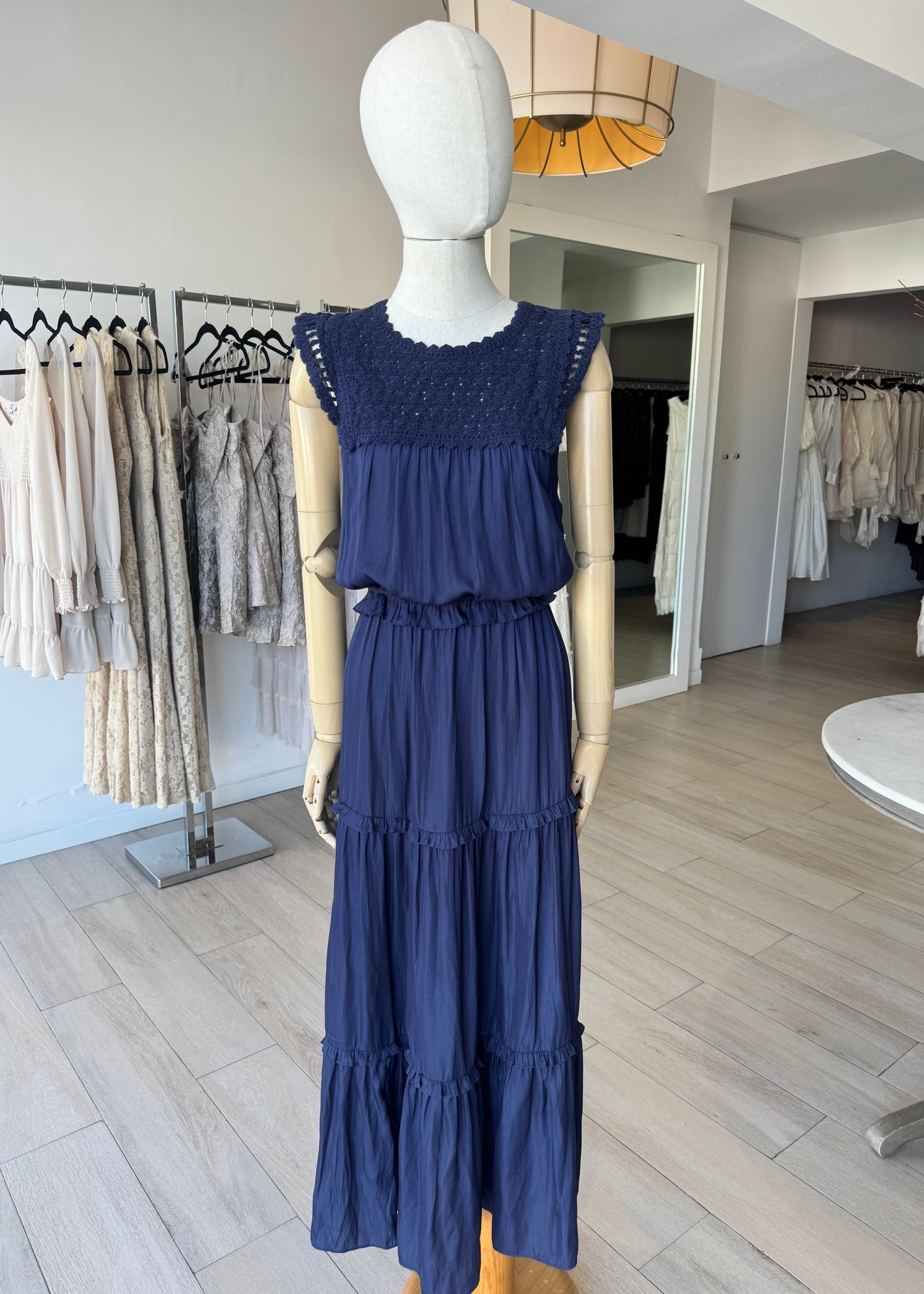 VESTIDO LARGO CUELLO TEJIDO SEDA MARINO