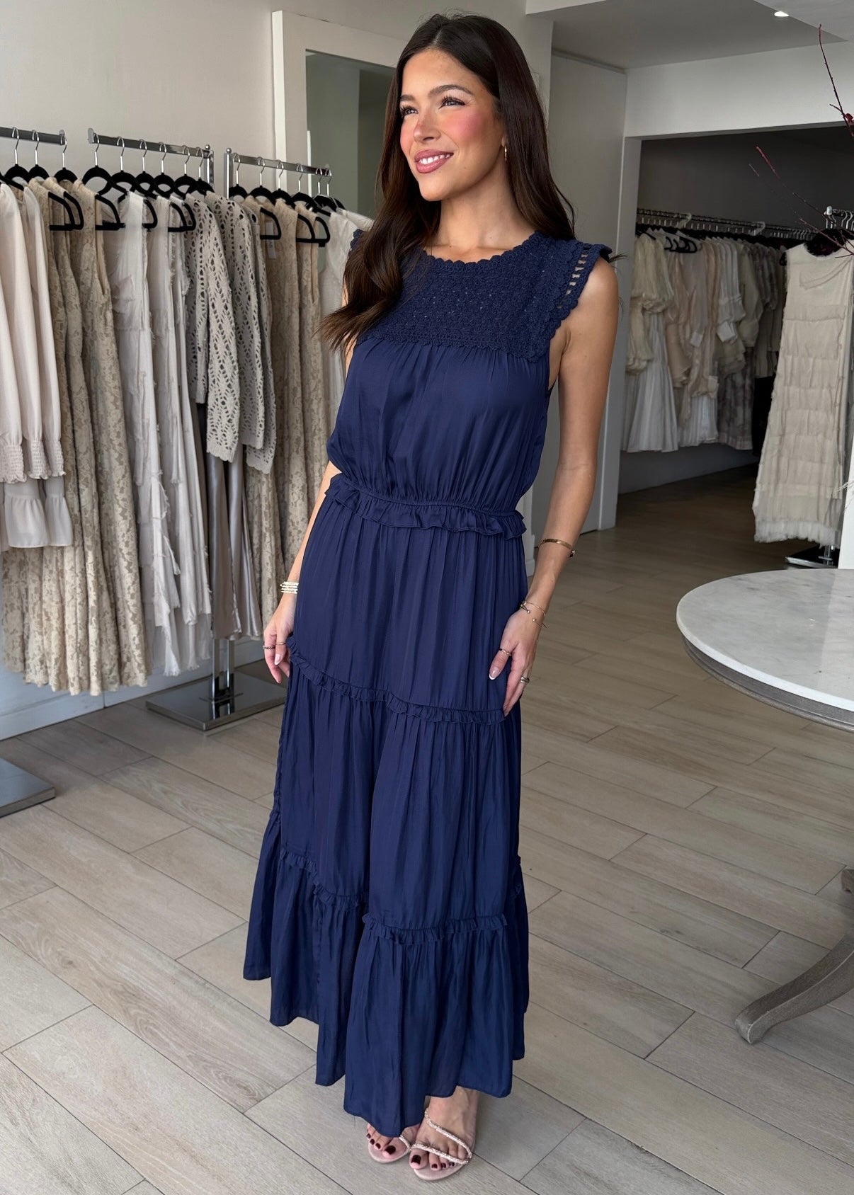 VESTIDO LARGO OLANES ESTAMPADO AZUL