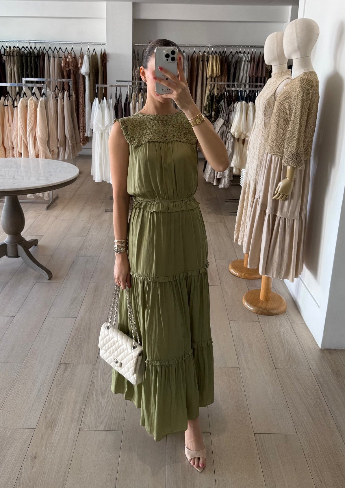 VESTIDO MIDI TIRANTES OLANES TUL CREMA