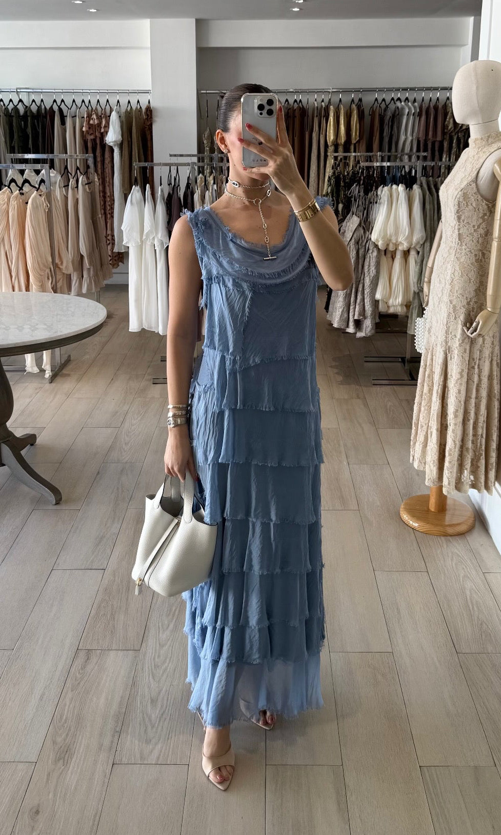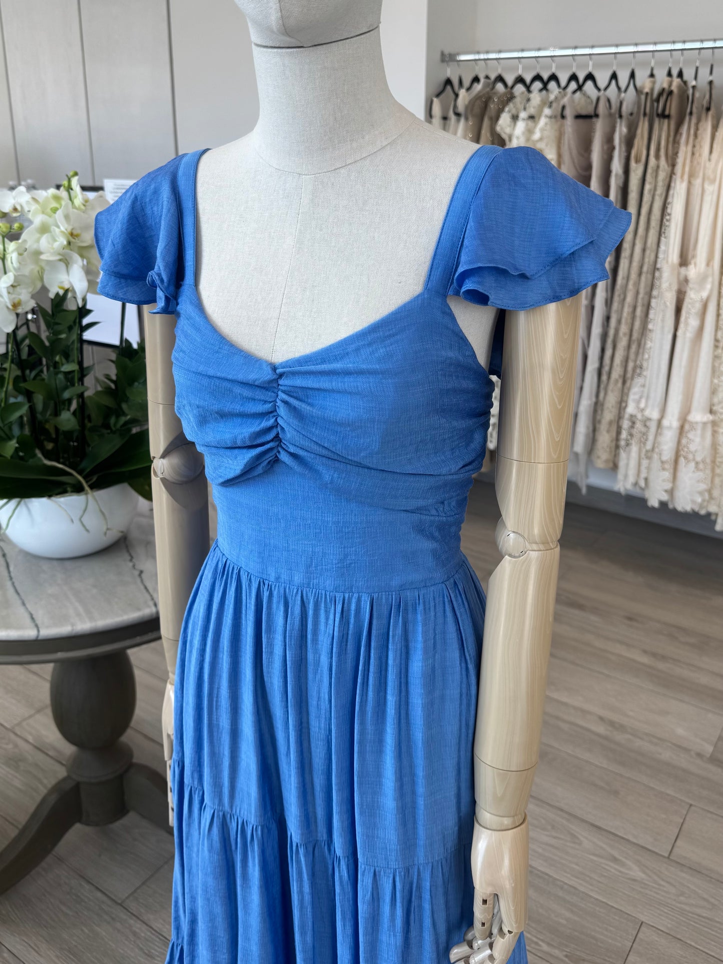 VESTIDO LARGO OLANES AZUL