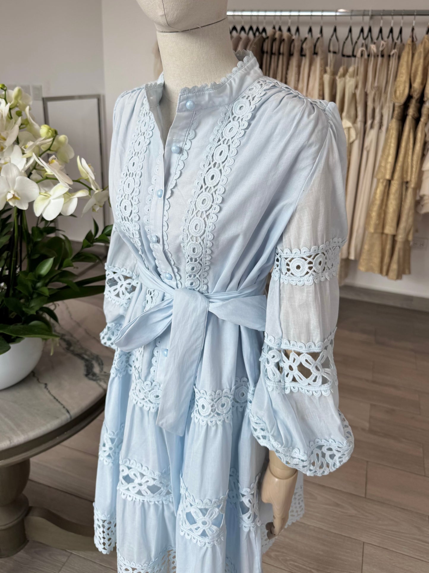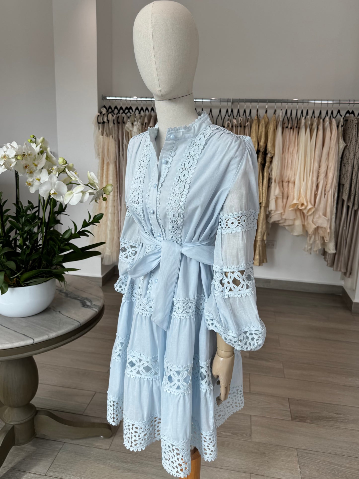 VESTIDO CORTO-LARGO TEXTURA AZUL CIELO