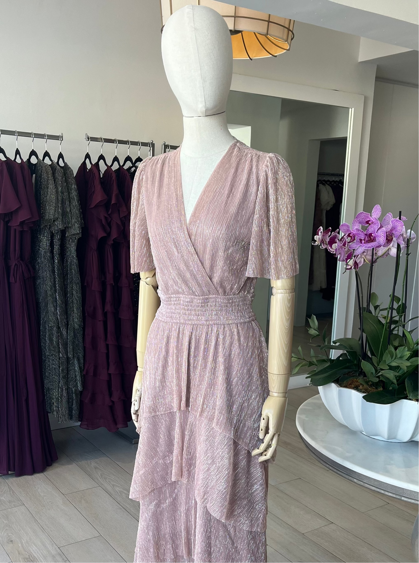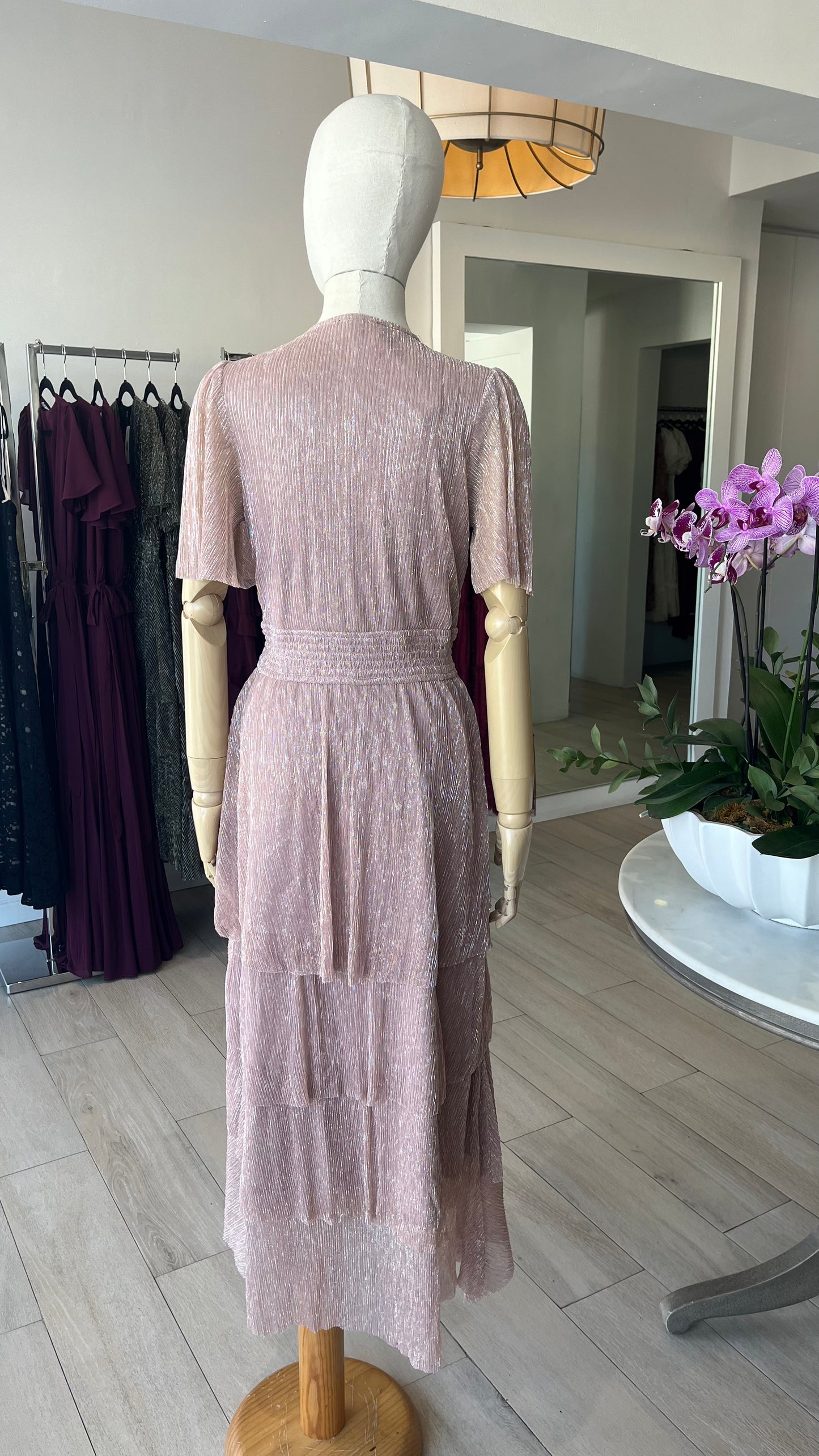 VESTIDO PLISADO ORO ROSA