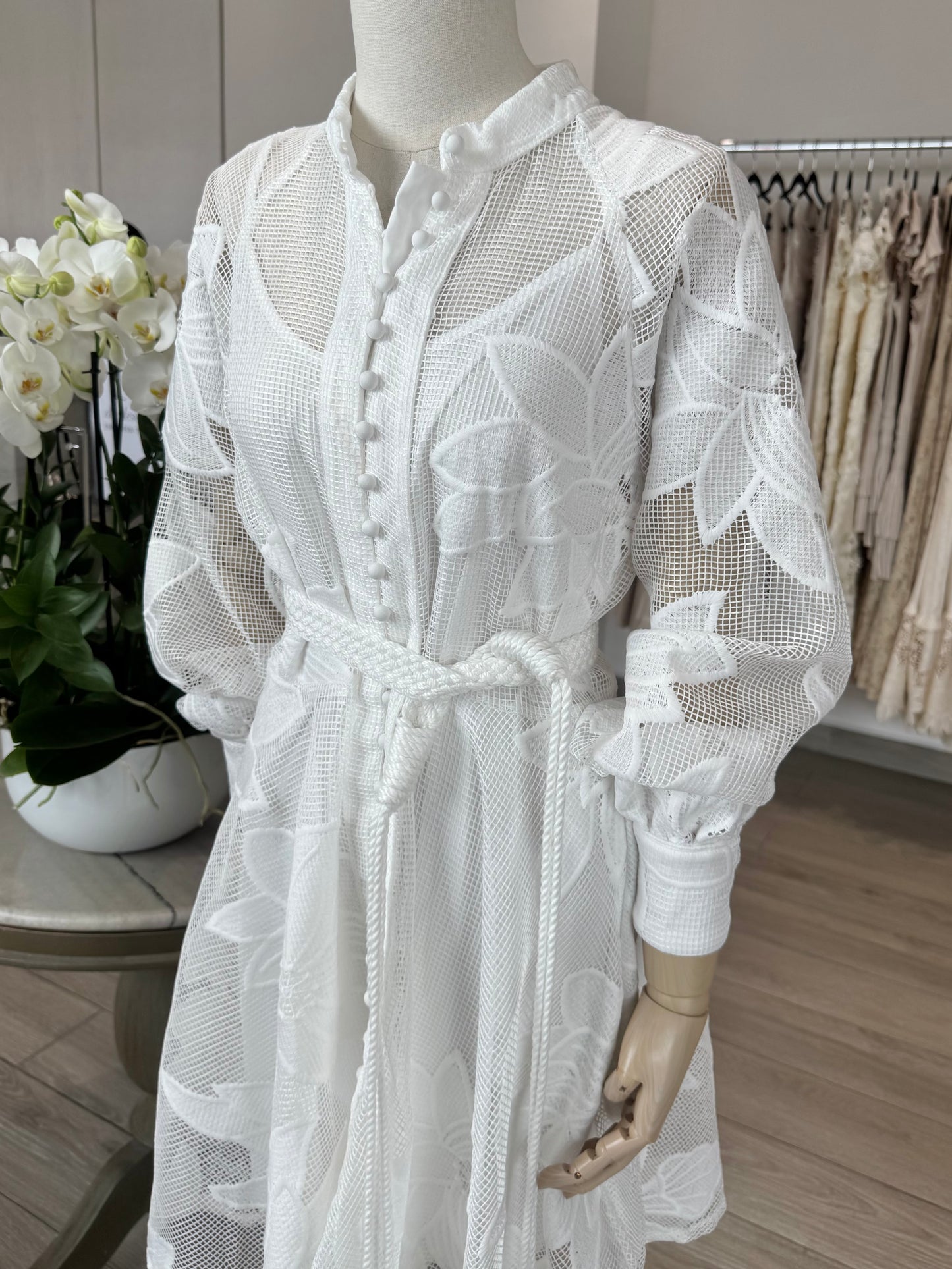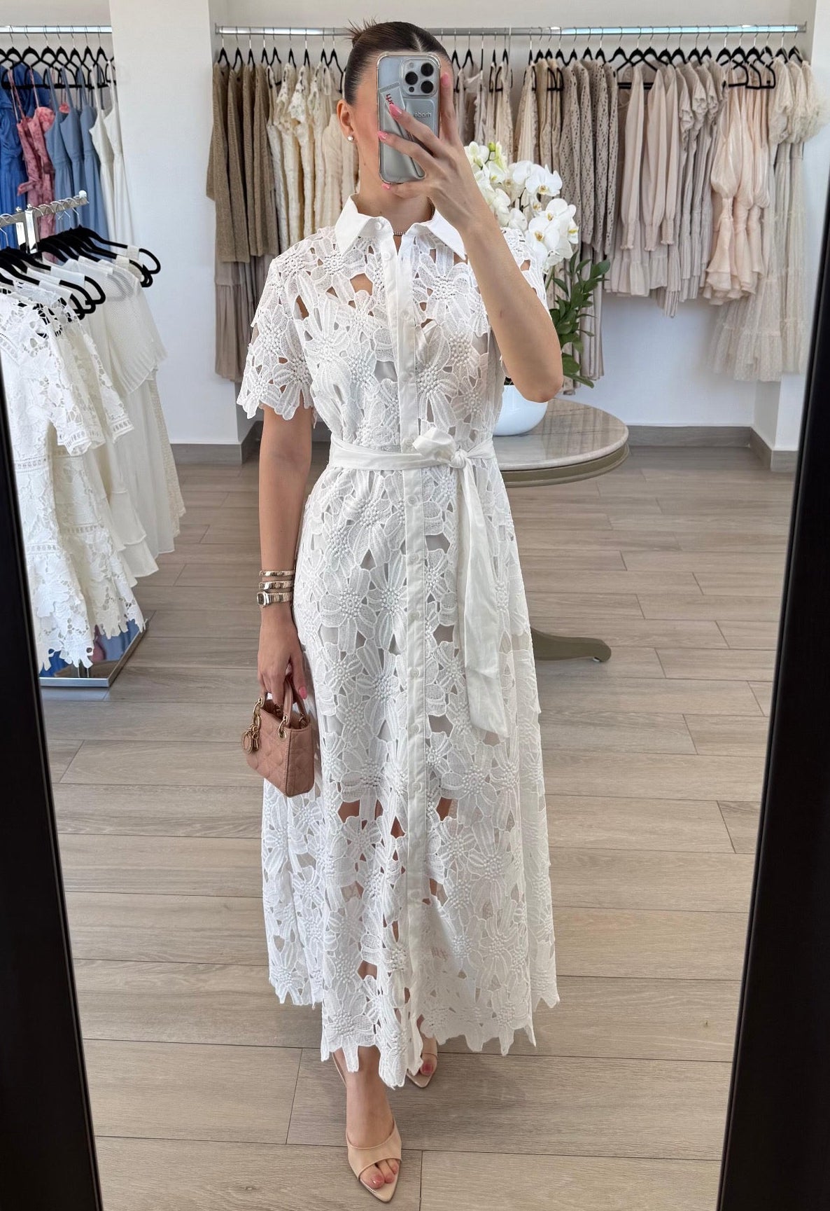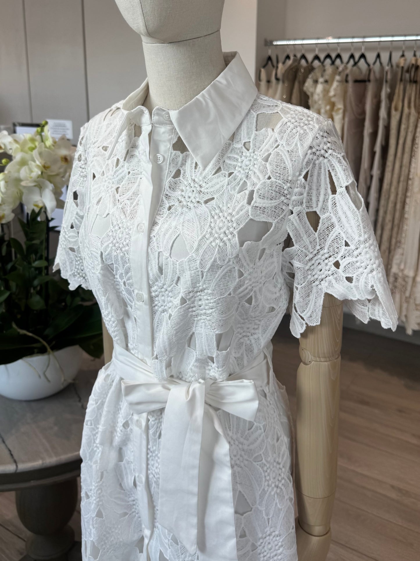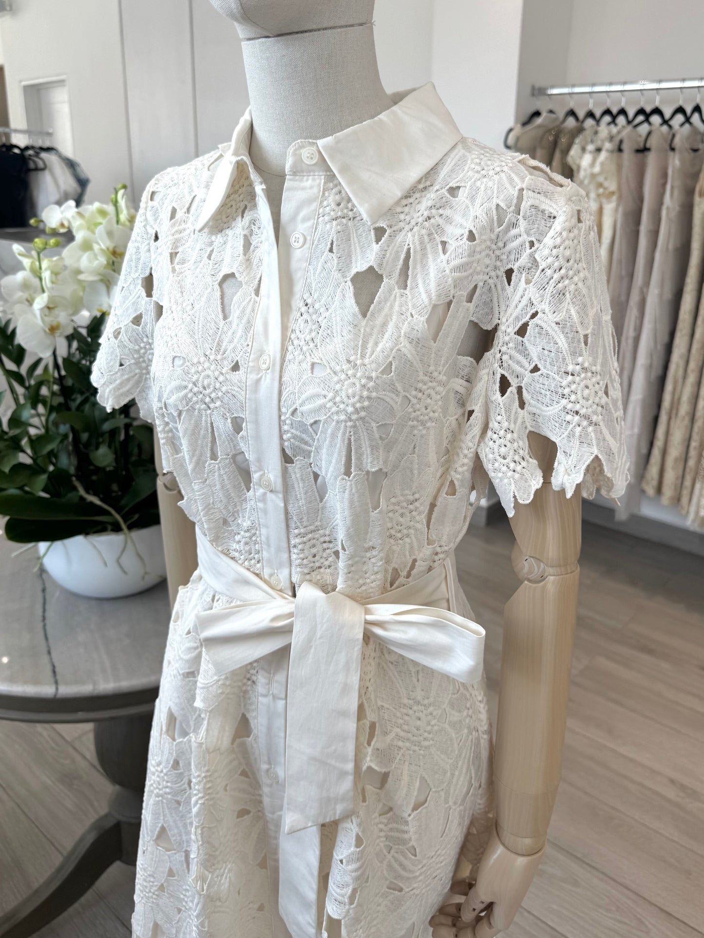 VESTIDO MIDI CAMISERO ENCAJE BLANCO
