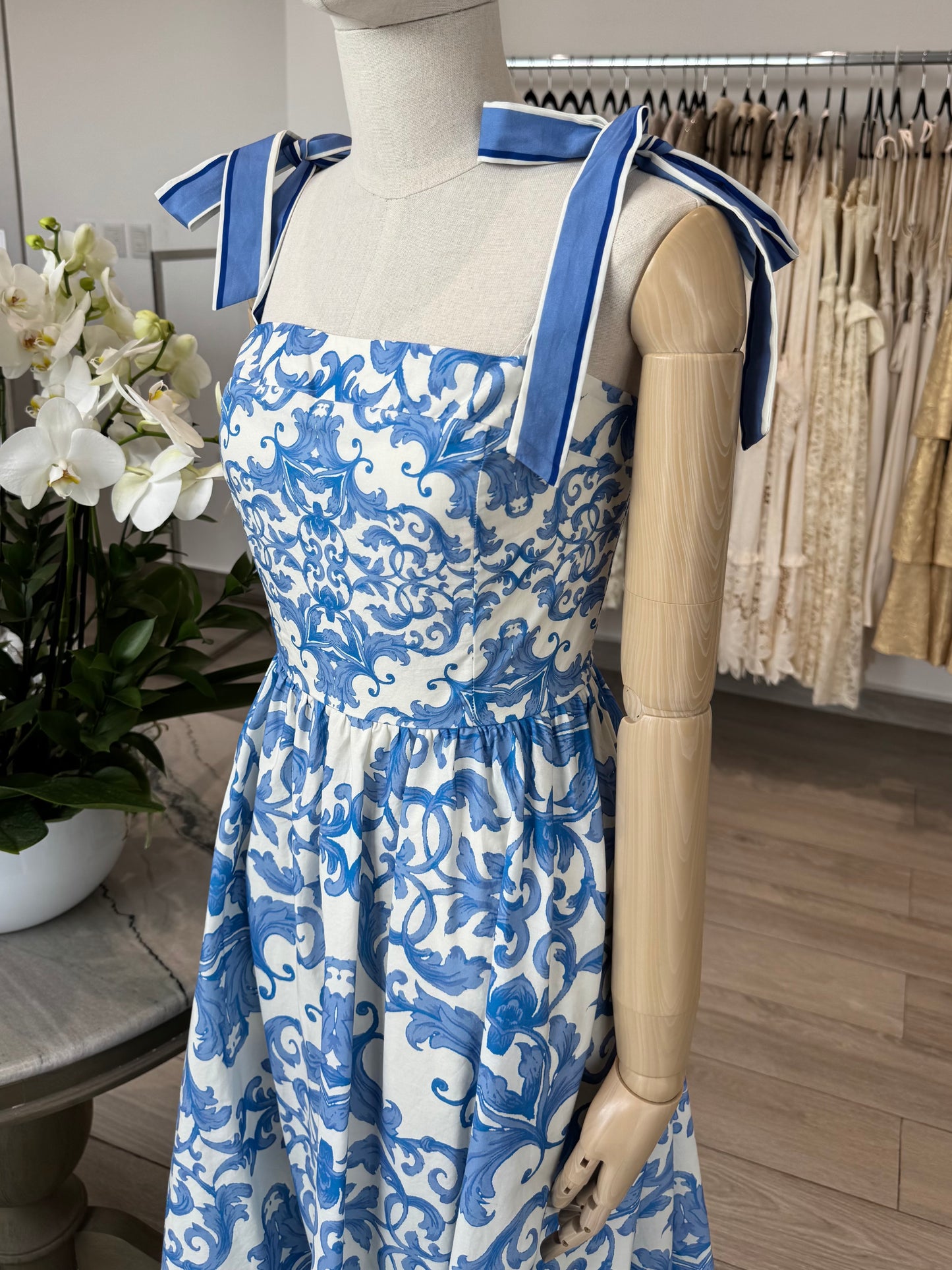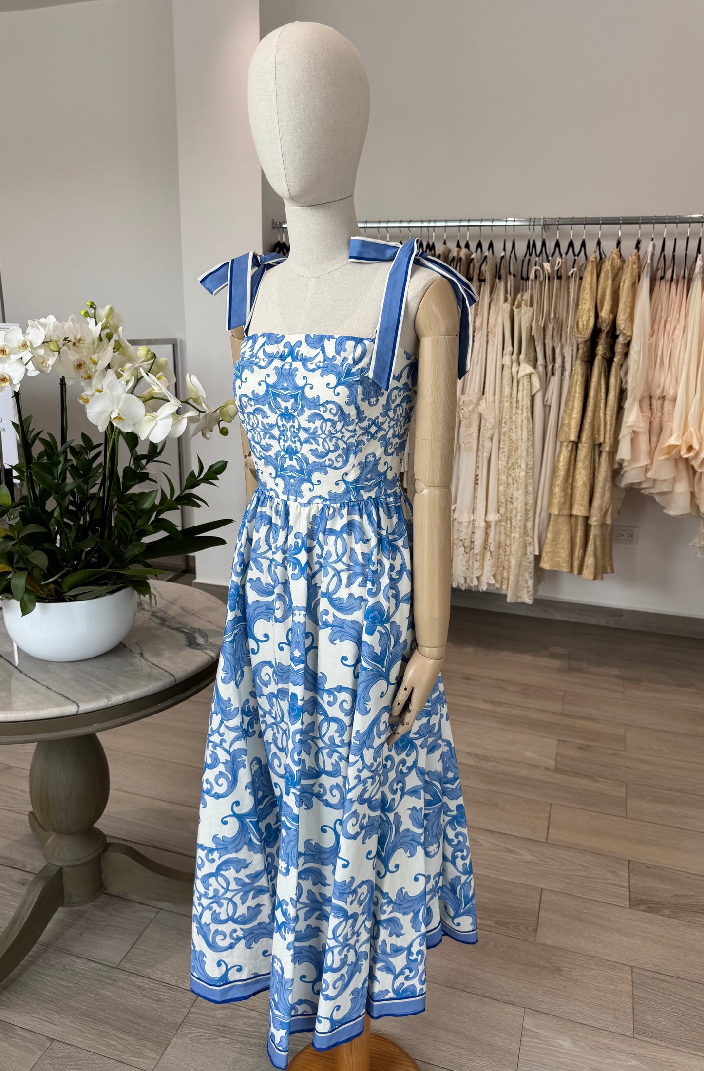 VESTIDO LARGO TIRANTES LAZO ESTAMPADO AZULEJOS