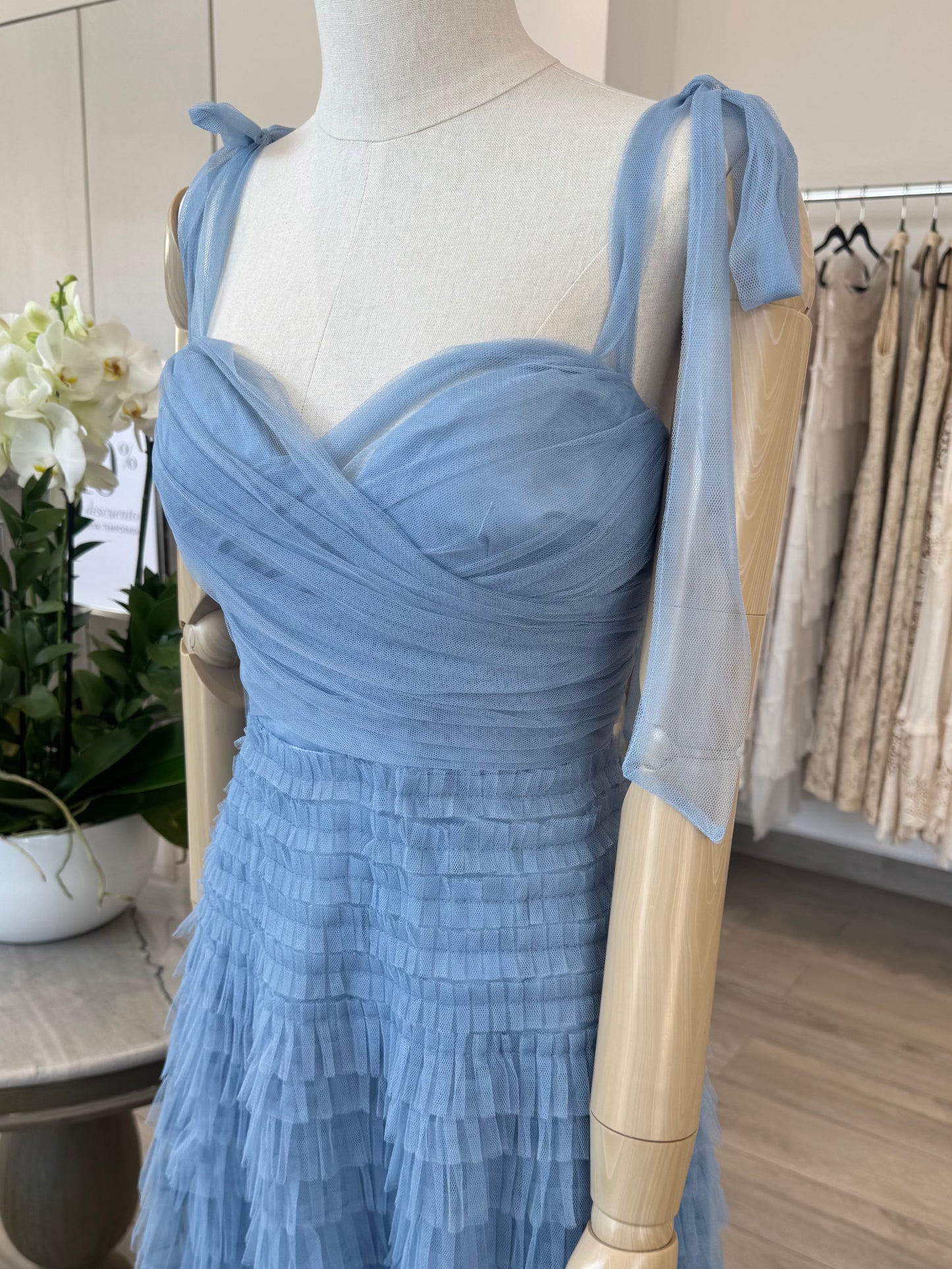 VESTIDO MIDI TIRANTES OLANES TUL AZUL