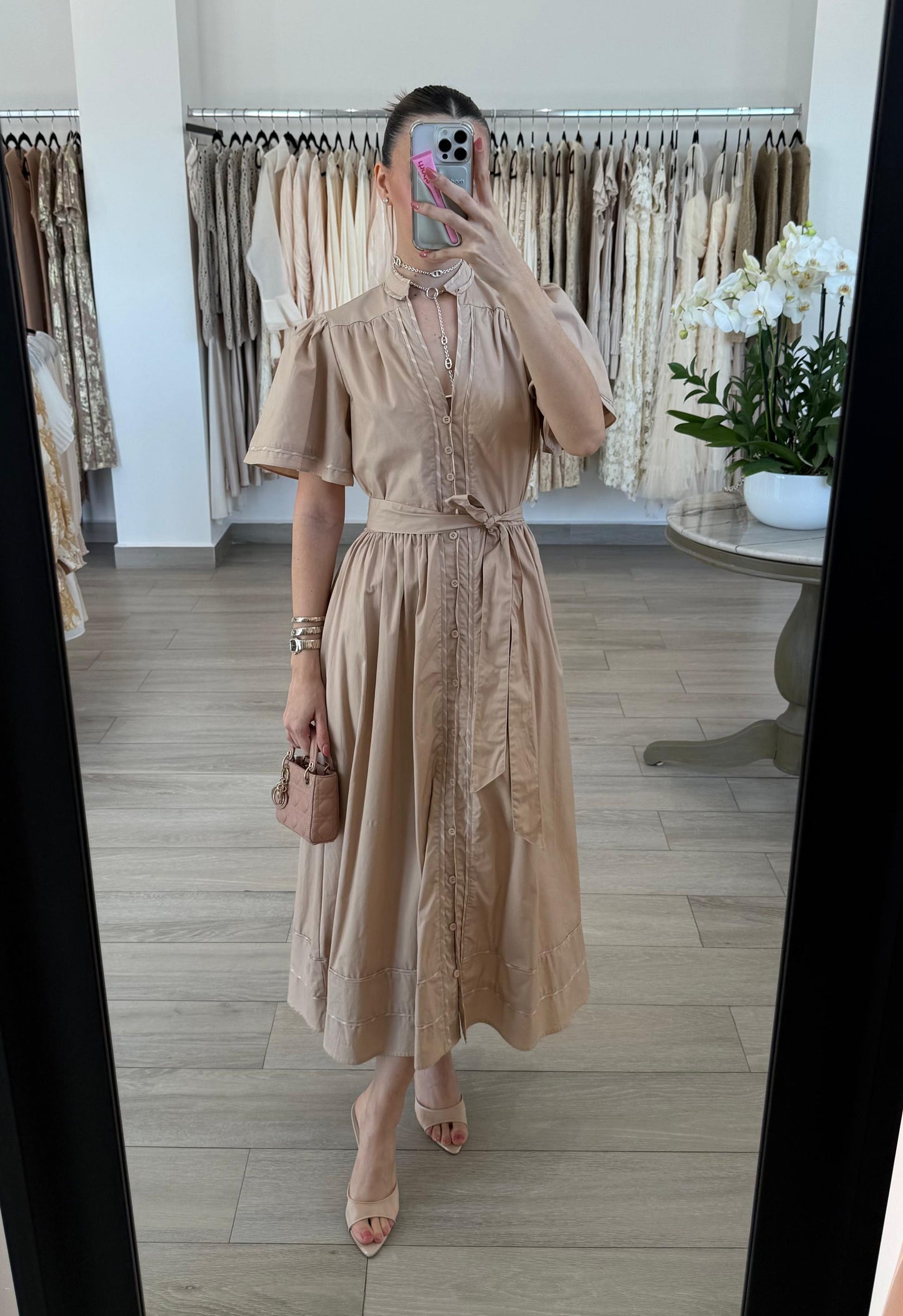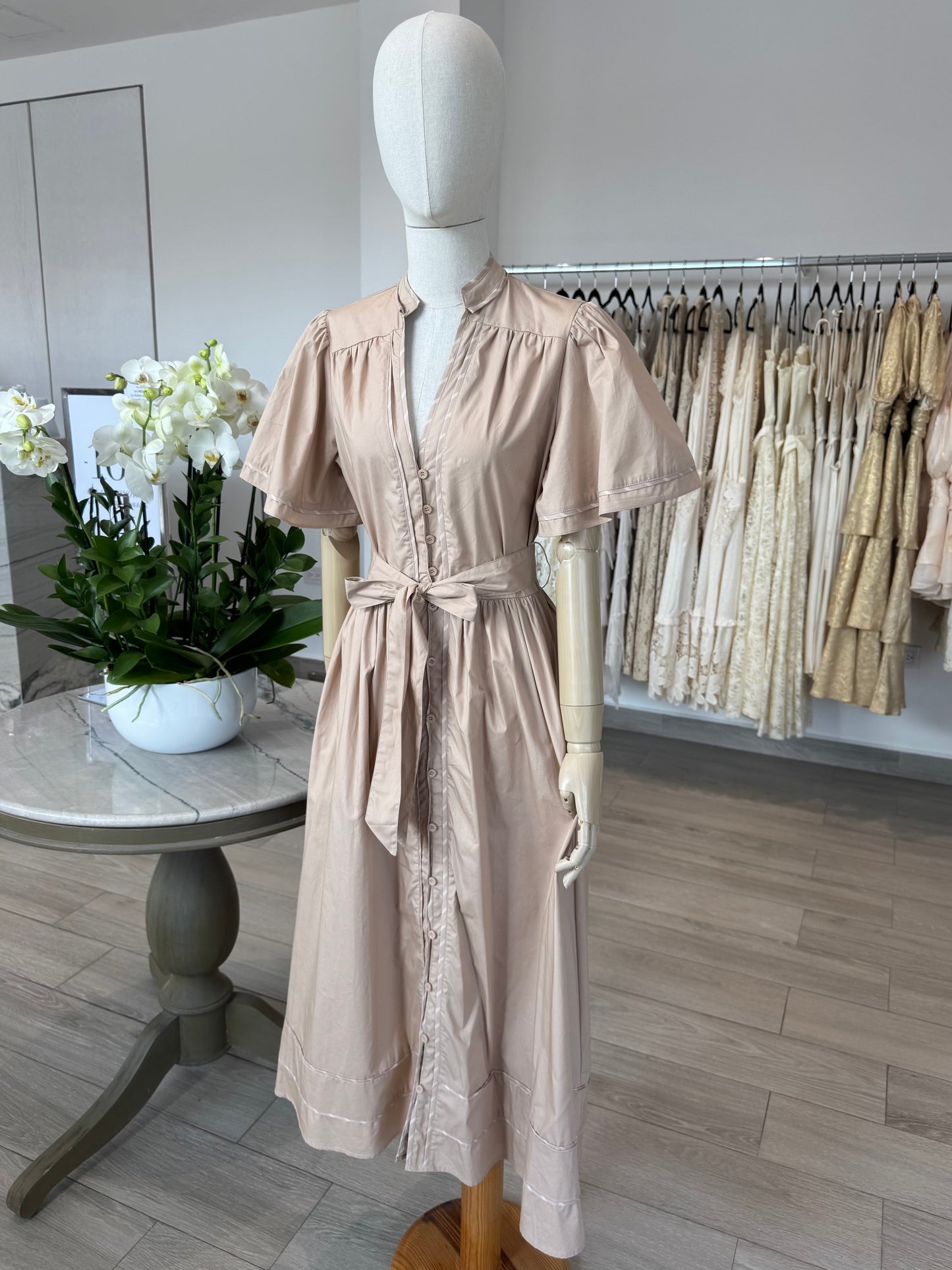 VESTIDO MIDI MAO POPELINA BEIGE