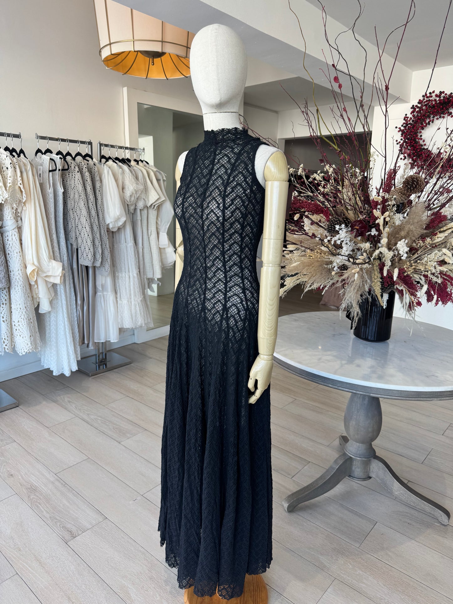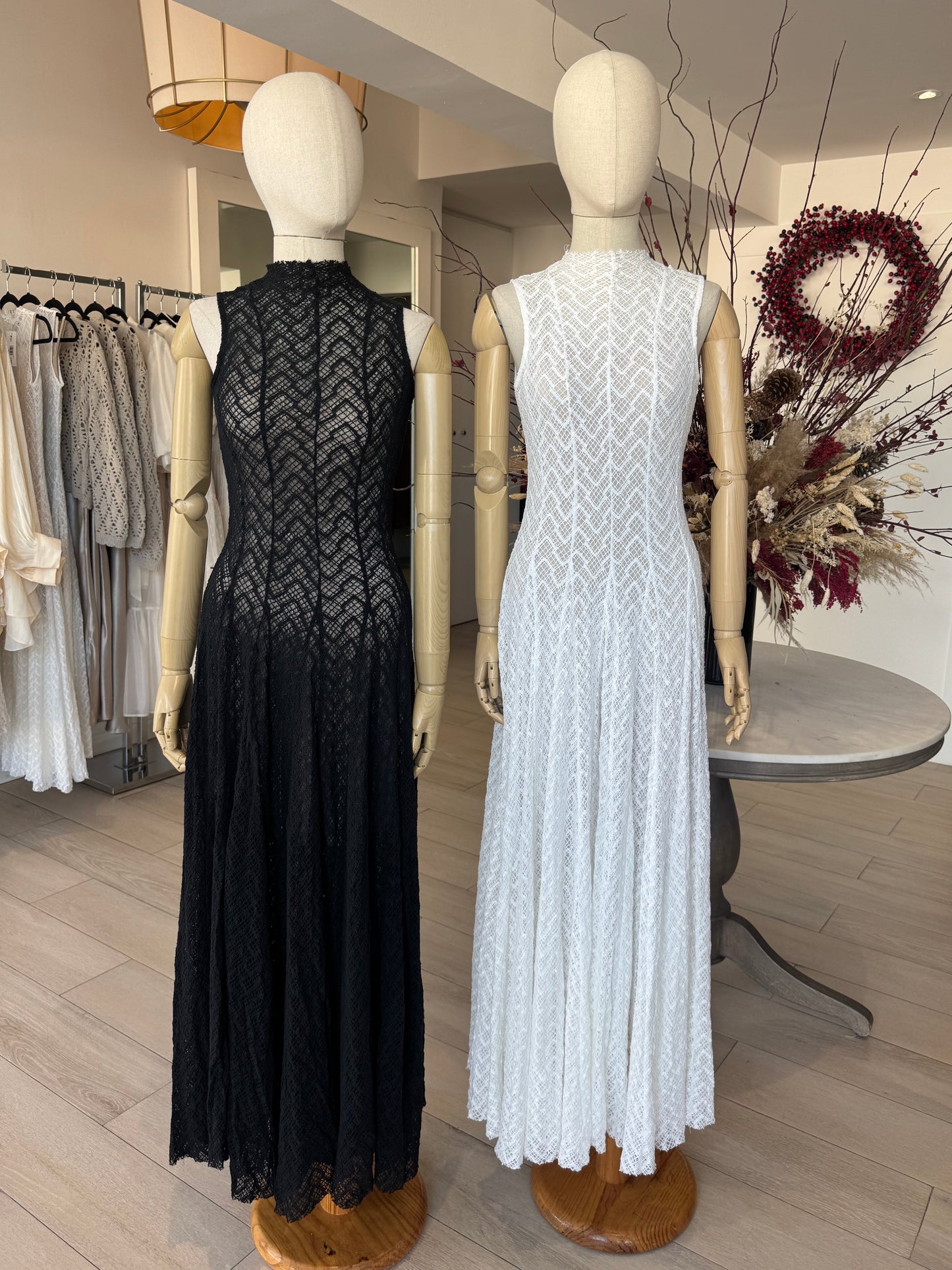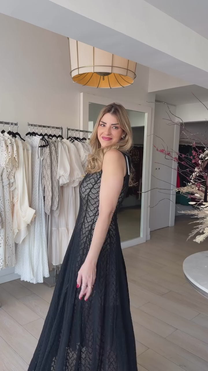 Diseño largo y sin mangas, entallado en la parte superior y con encaje sutil que aporta textura y elegancia. Femenino, ligero e ideal para días cálidos y ocasiones especiales.