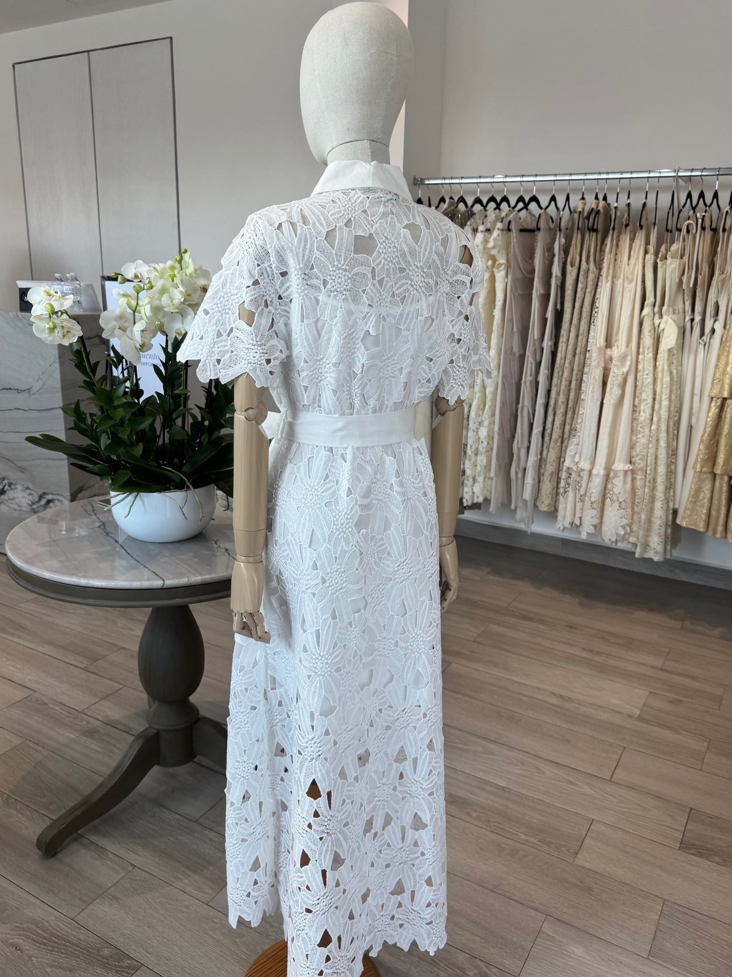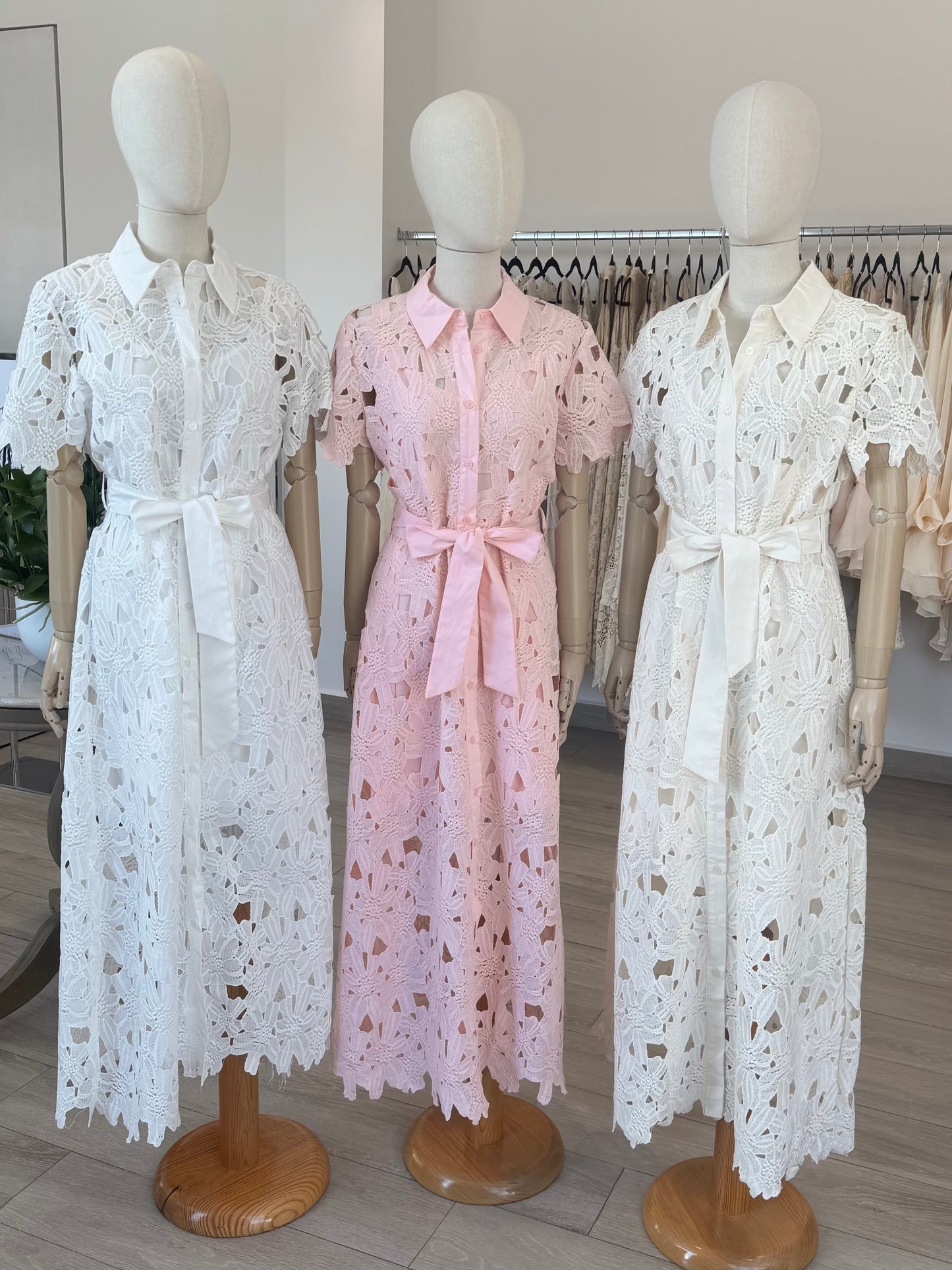 VESTIDO MIDI CAMISERO ENCAJE BLANCO