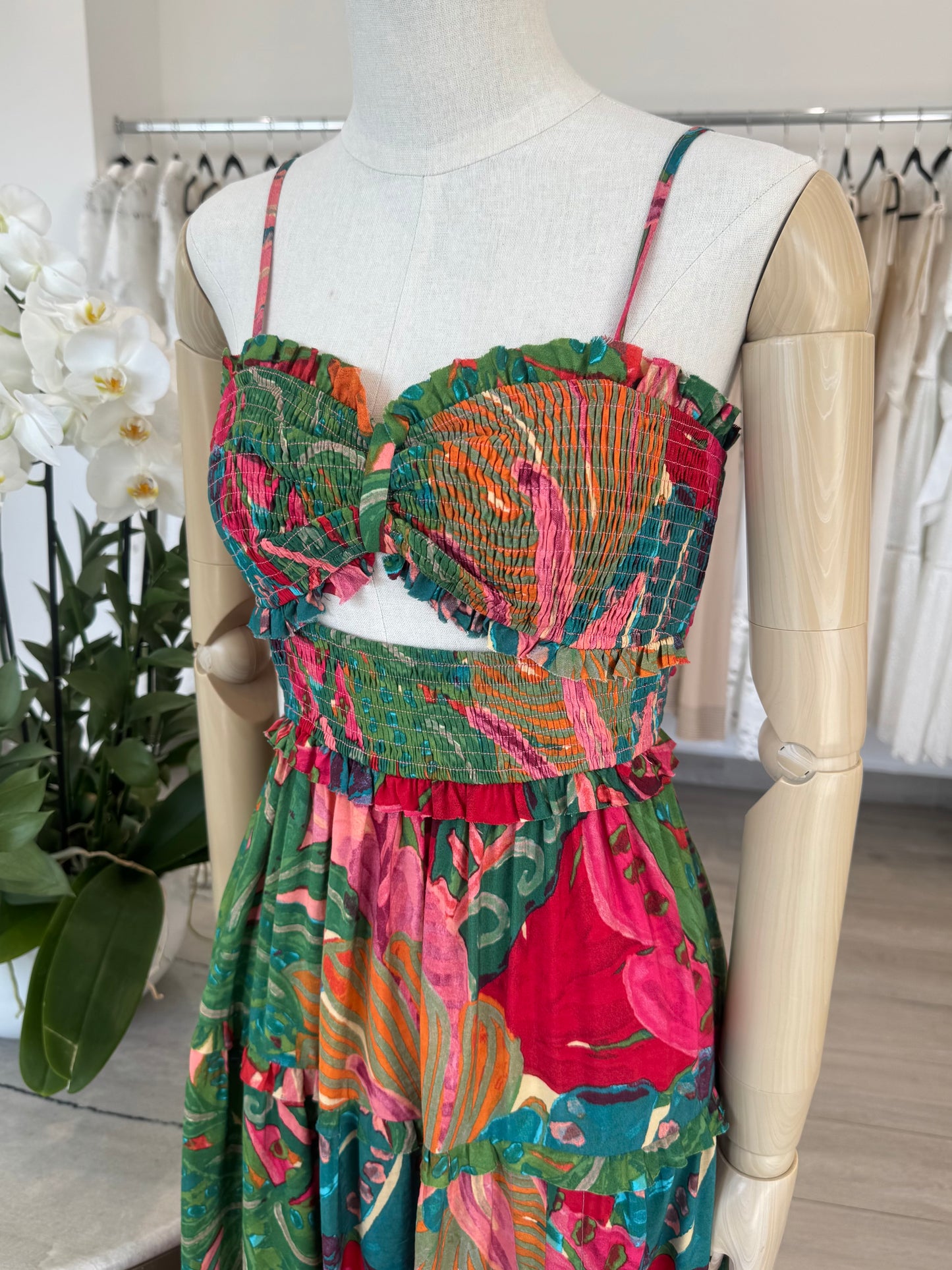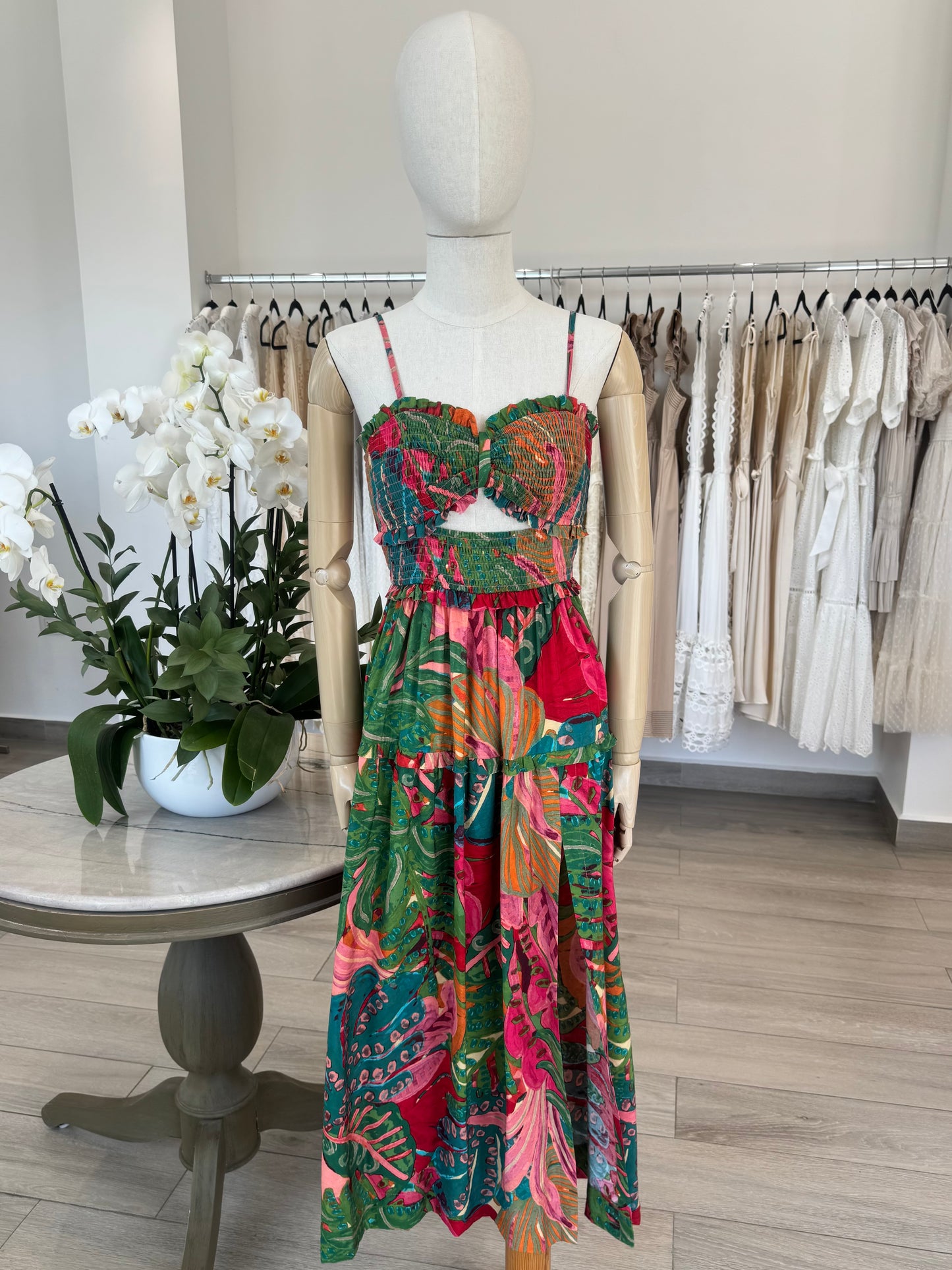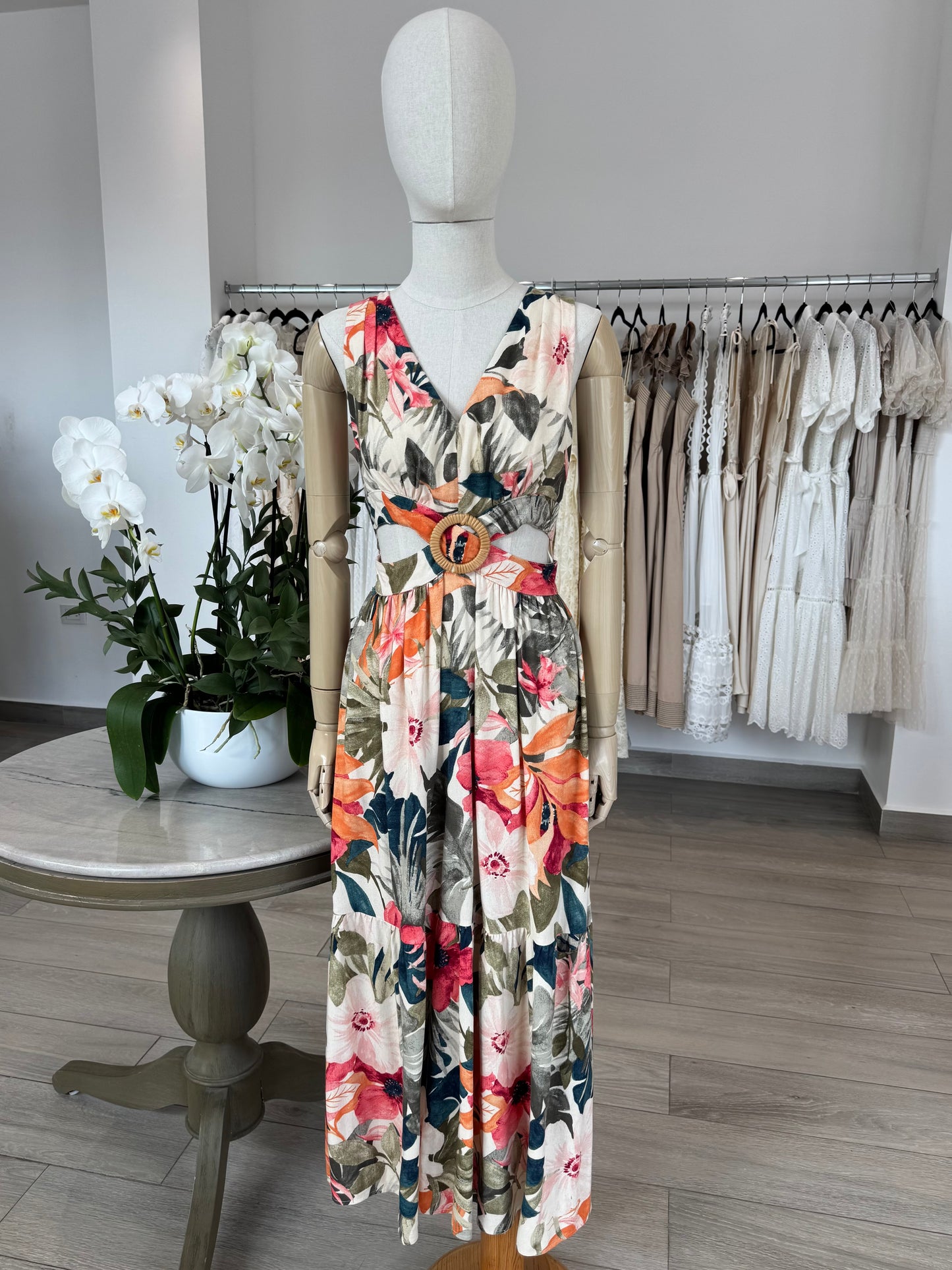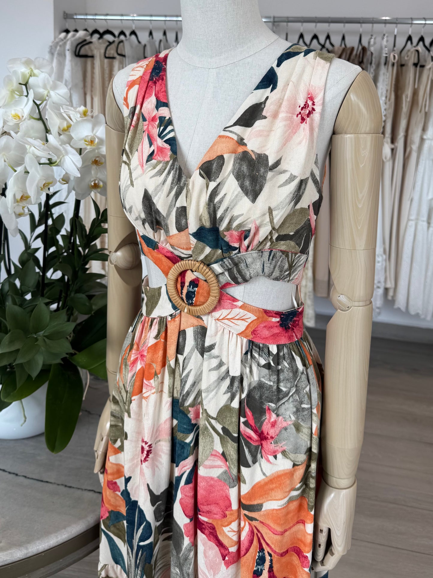 VESTIDO MIDI CUT OUT HEBILLA TROPICAL