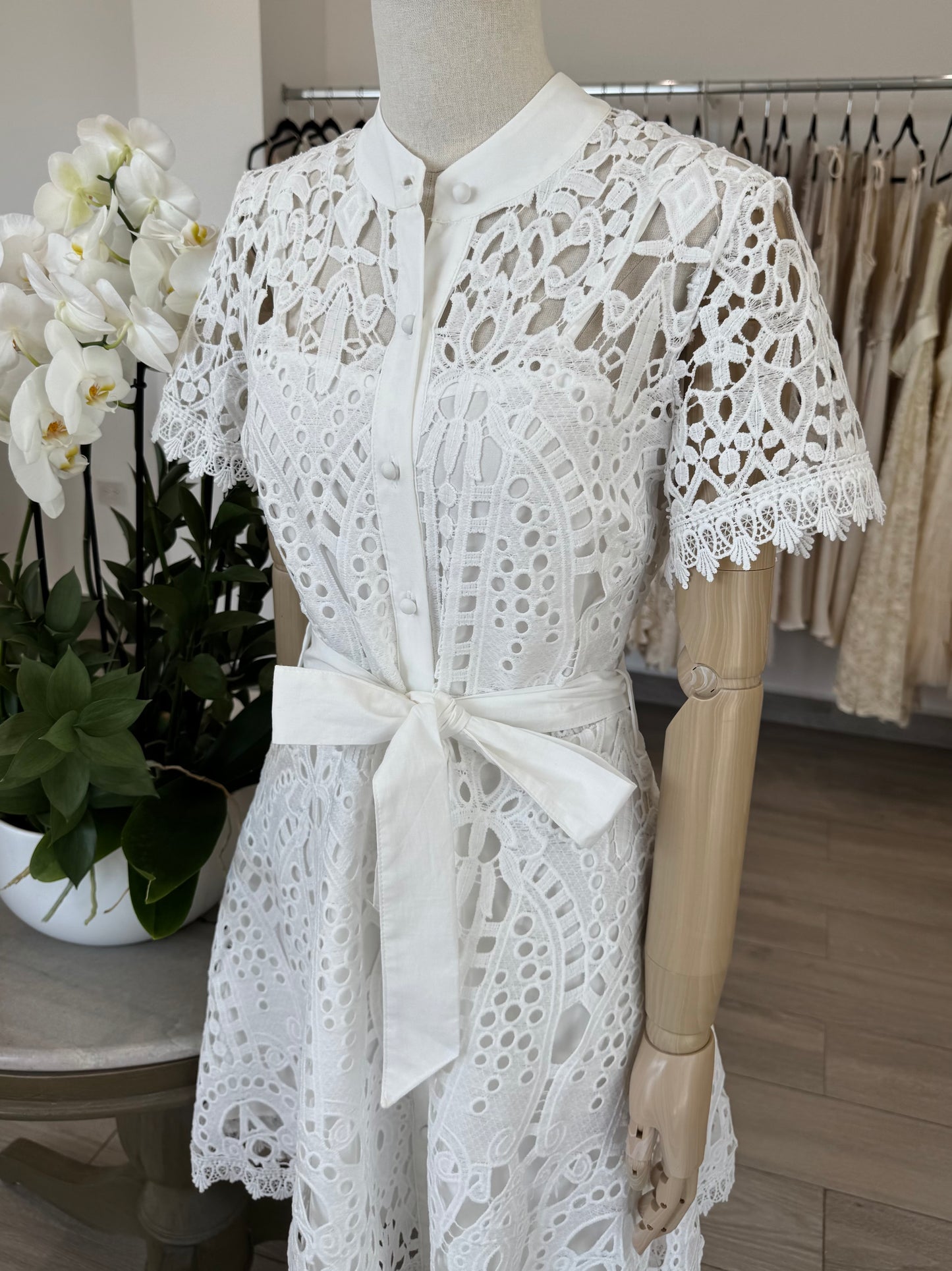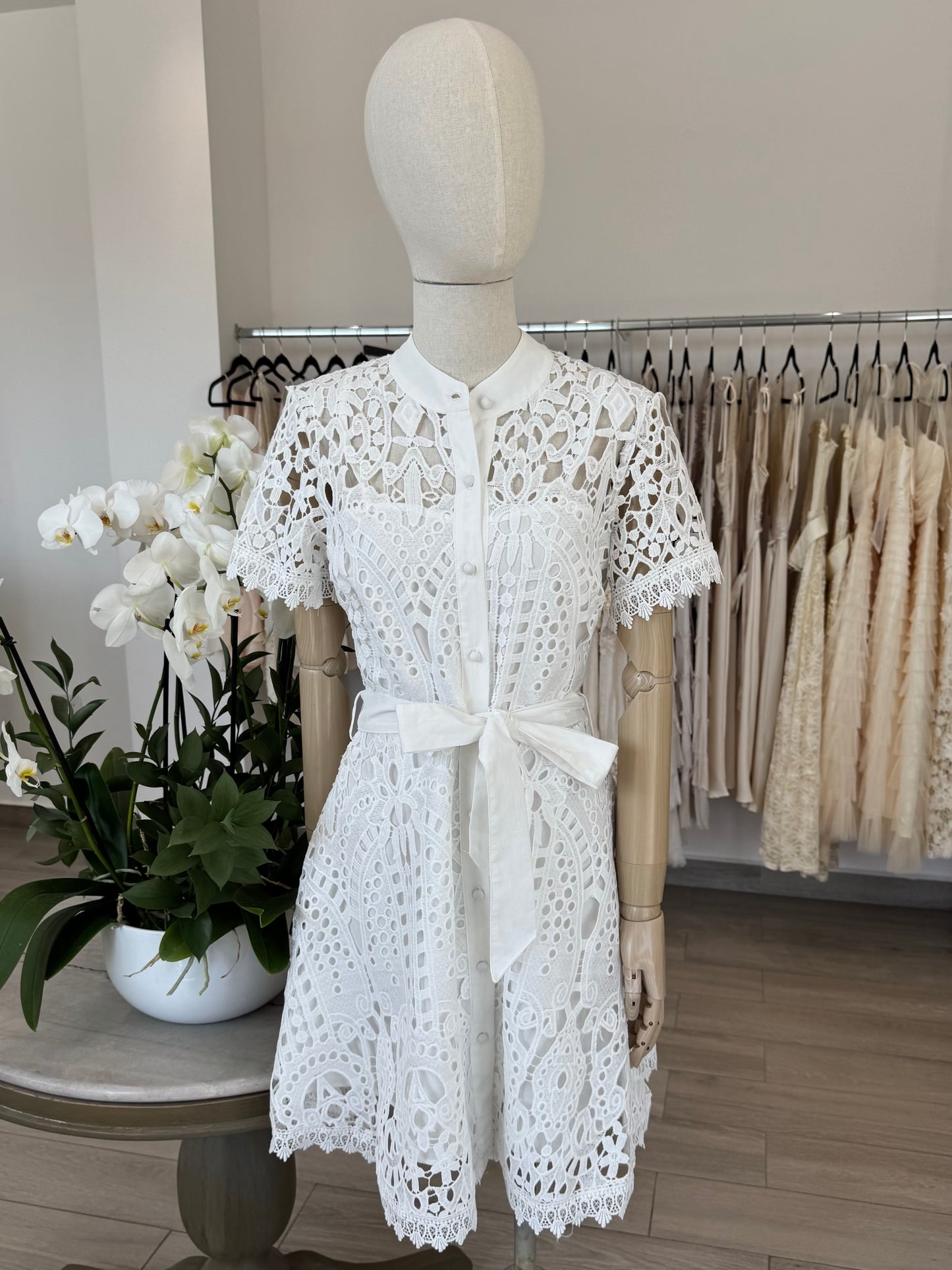 VESTIDO CORTO MAO BOTONES ENCAJE BLANCO