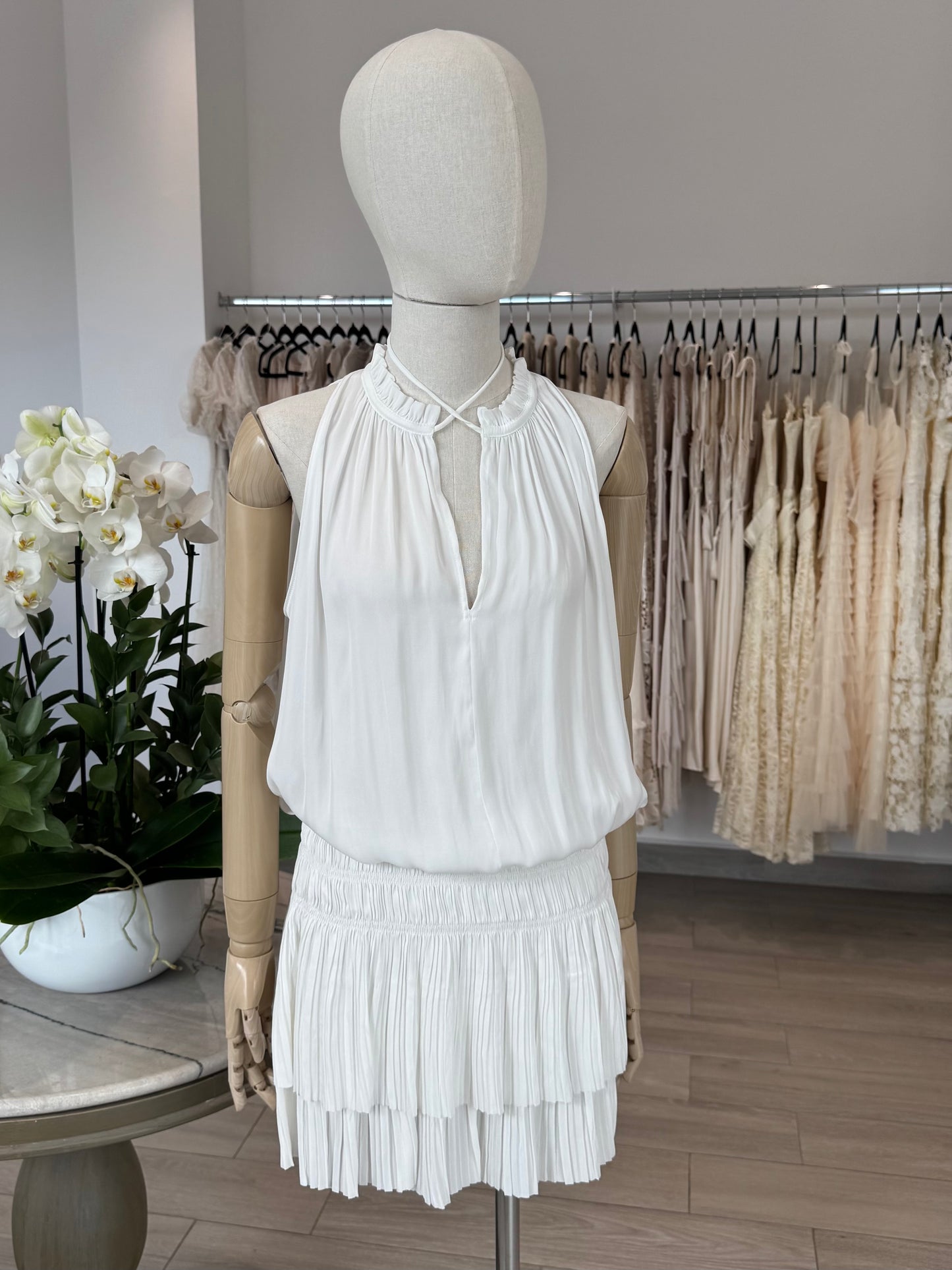 VESTIDO CORTO PLISADO BLANCO