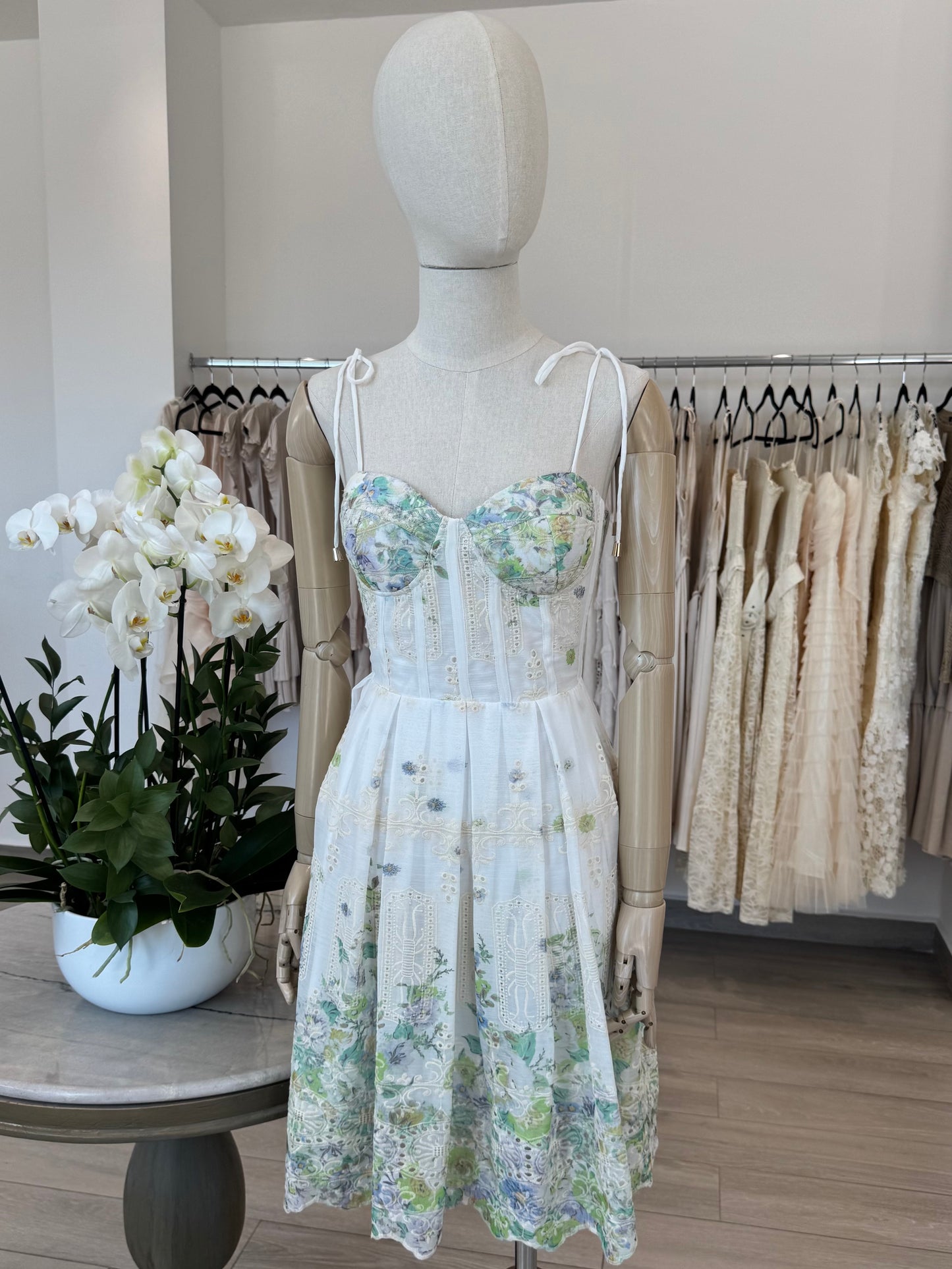 VESTIDO CORTO MAO ENCAJE FLORES BLANCO