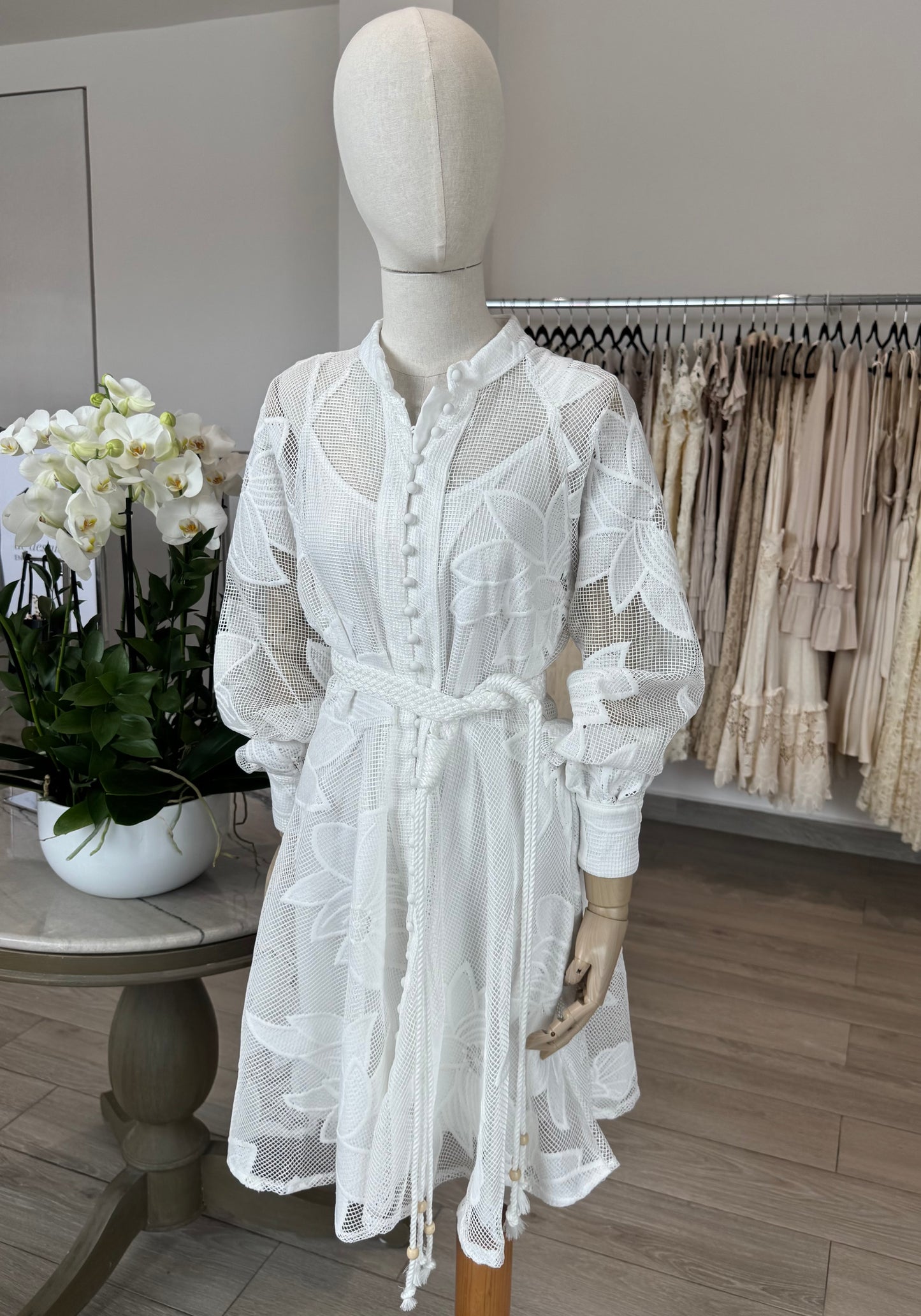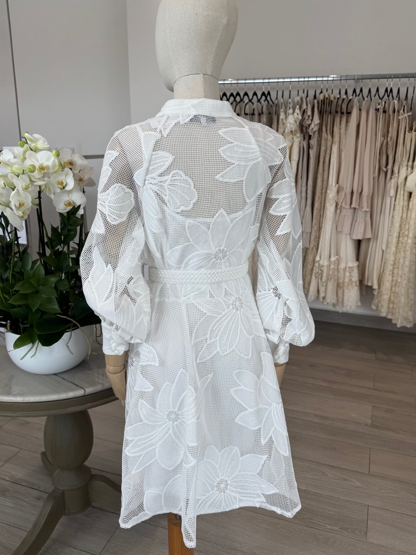 VESTIDO CORTO MAO ENCAJE FLORES BLANCO
