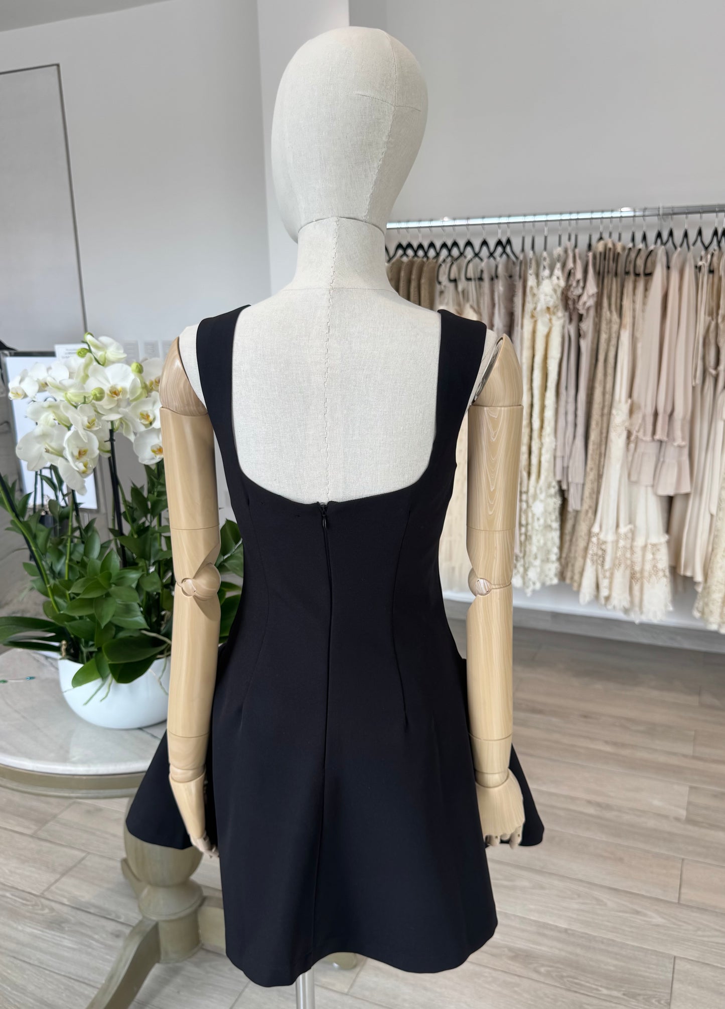 VESTIDO CORTO CUELLO CUADRADO NEGRO