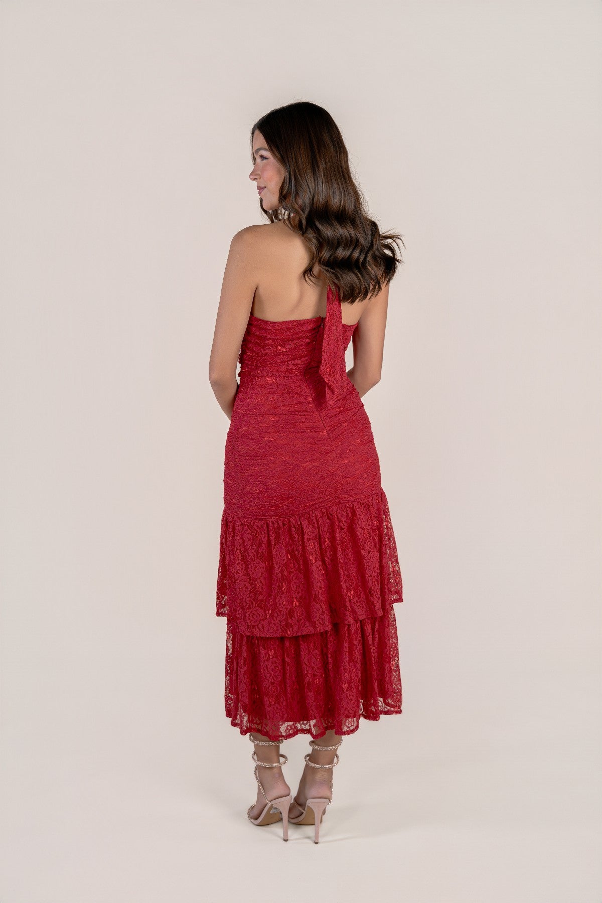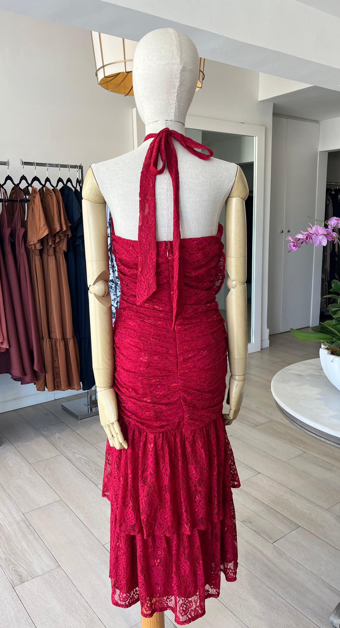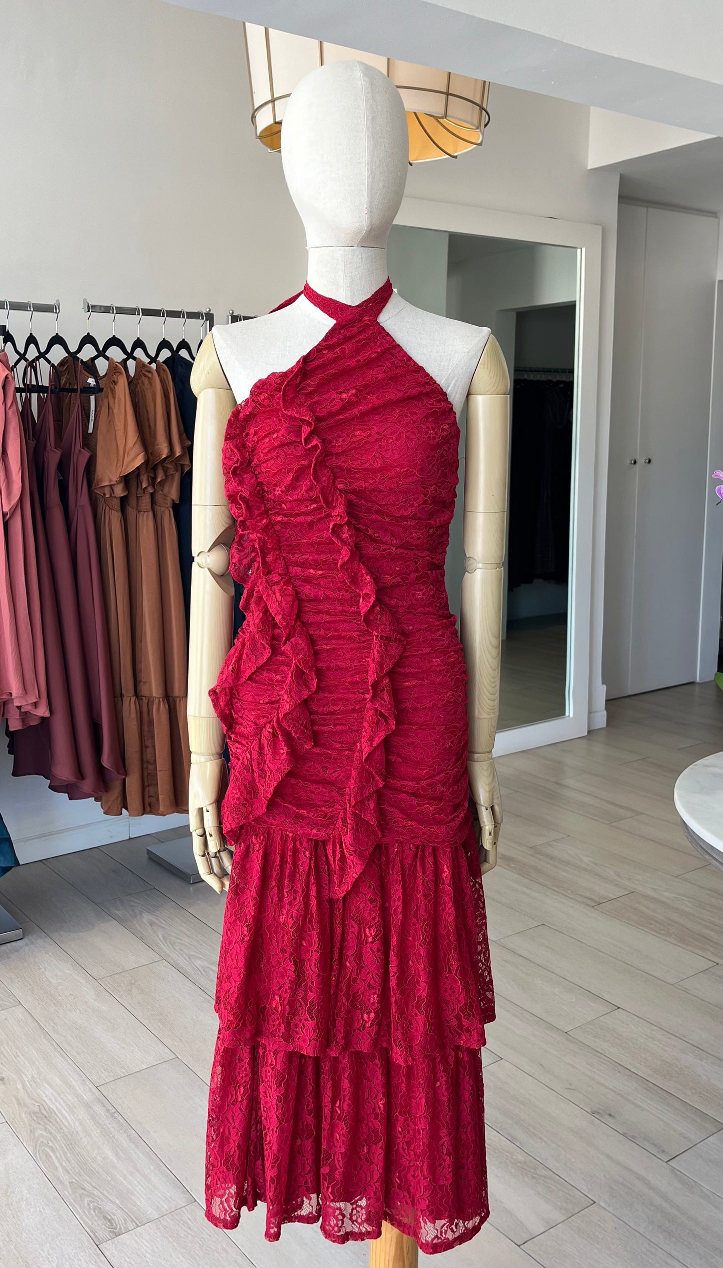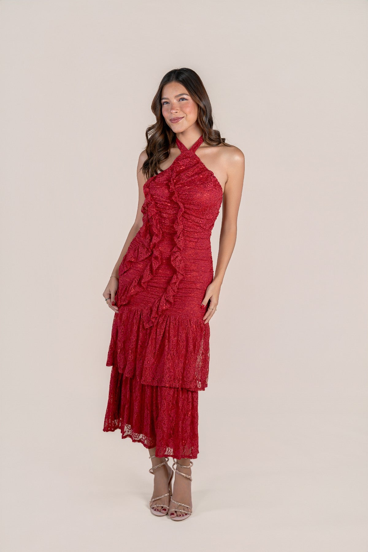 El escote halter y su corte corto lo hacen perfecto para destacar de noche.